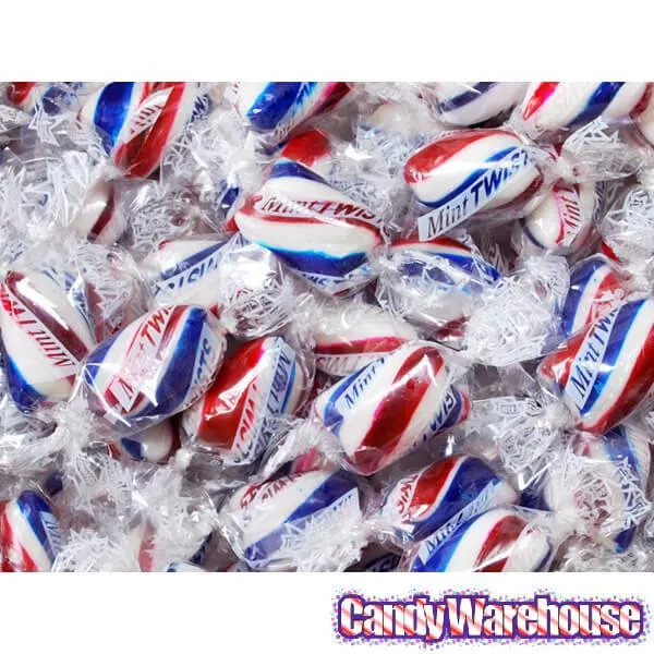 Bag contains 2 pounds of USA Patriotic Peppermint Twists Hard Candy.