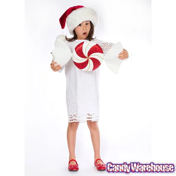 This peppermint patty rocks sparkly red and white whirls with green glitter swirls, and coupled with the white flair of its wrapper, it’s a real showstopper! Dangle this treat from doorways, mantels, ceilings, and even outdoor trees. Of course, it’s made of glitter and plastic, so you probably won’t want to give it a lick (unless you’re into that sort of thing). It’s ok, though. That’s what the tinier peppermints are for.