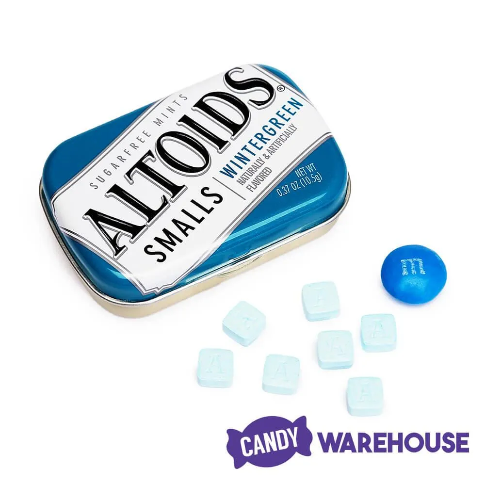 Display box contains 9 mini tins of Altoids Smalls Wintergreen Sugar Free Mints Candy.