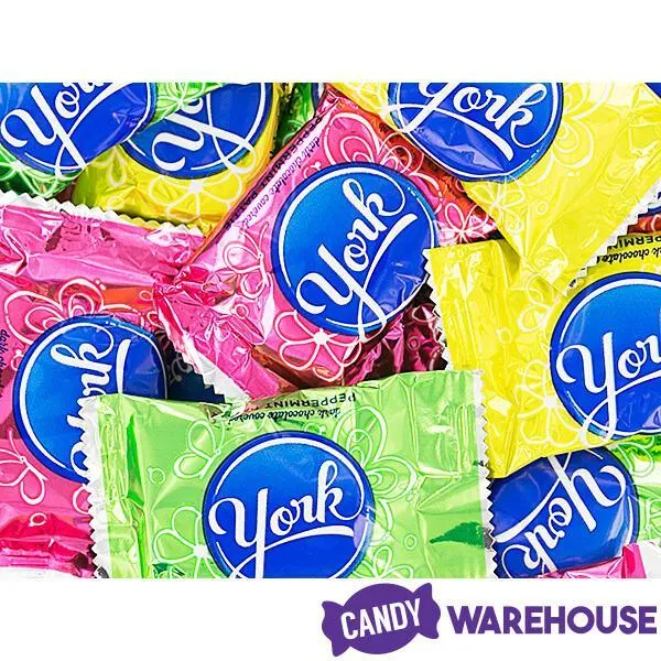Bag contains 9.6 ounces of Metallic Pastel Wrapped Mini York Peppermint Patties Eggs Candy... that's about 20 pieces.