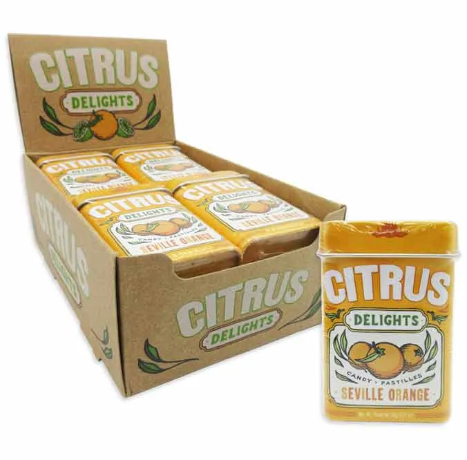 Citrus Delights Seville Orange Candy Pastilles Tins: 12-Piece Box
