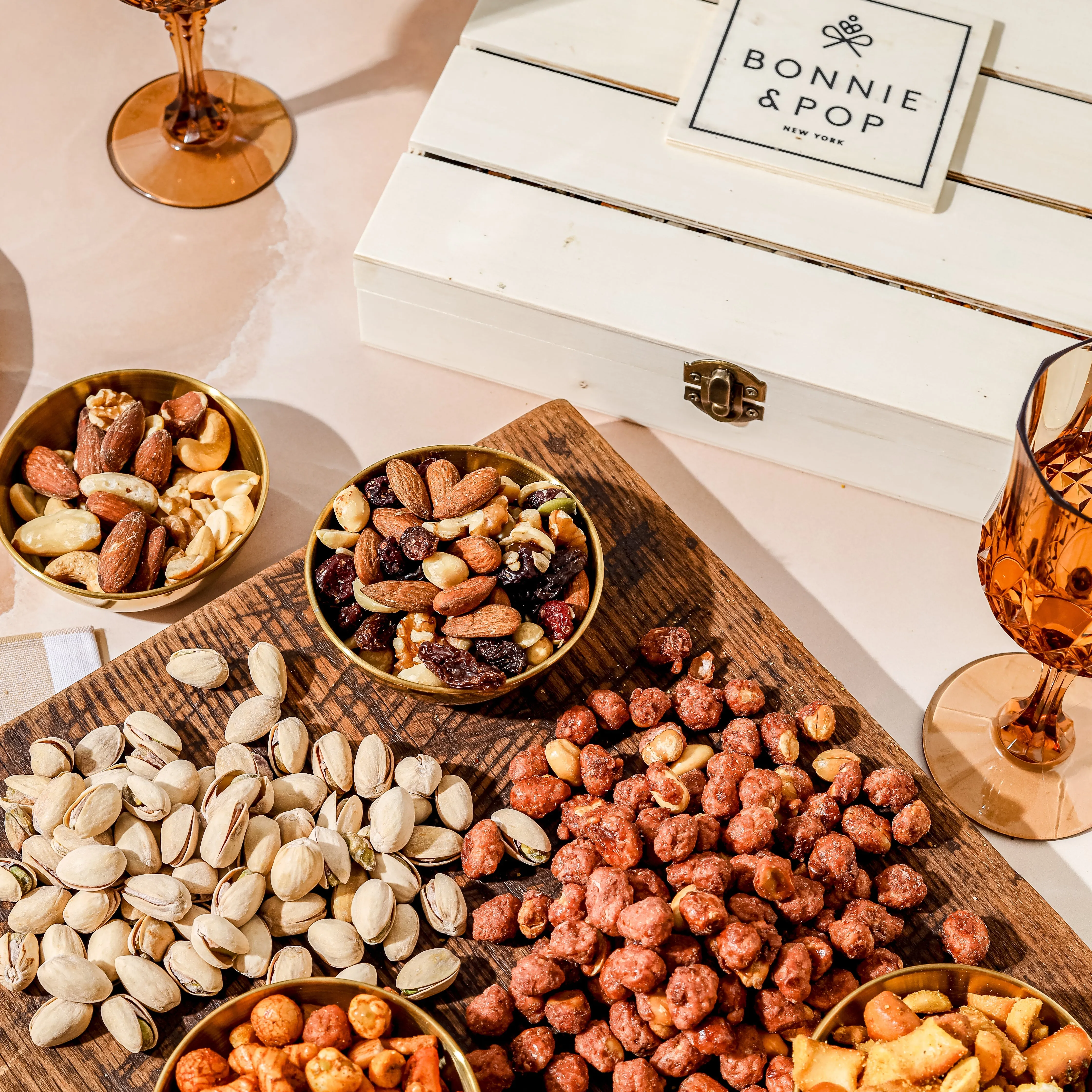 There’s nut-ing better then the salty, rich goodness of gourmet nuts, and this gift is definitely all it’s cracked up to be (and more!). Satiate your favorite snacker’s cravings with favorites like Praline Peanuts, Spicy Pub Mix and decadent Mixed Nuts. This bountiful spread is a touch sweet, a whole lot savory and 100% addictive.