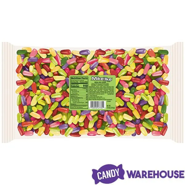 Bag contains 5 pounds of Mike and Ike Sour Mega Mix Candy.