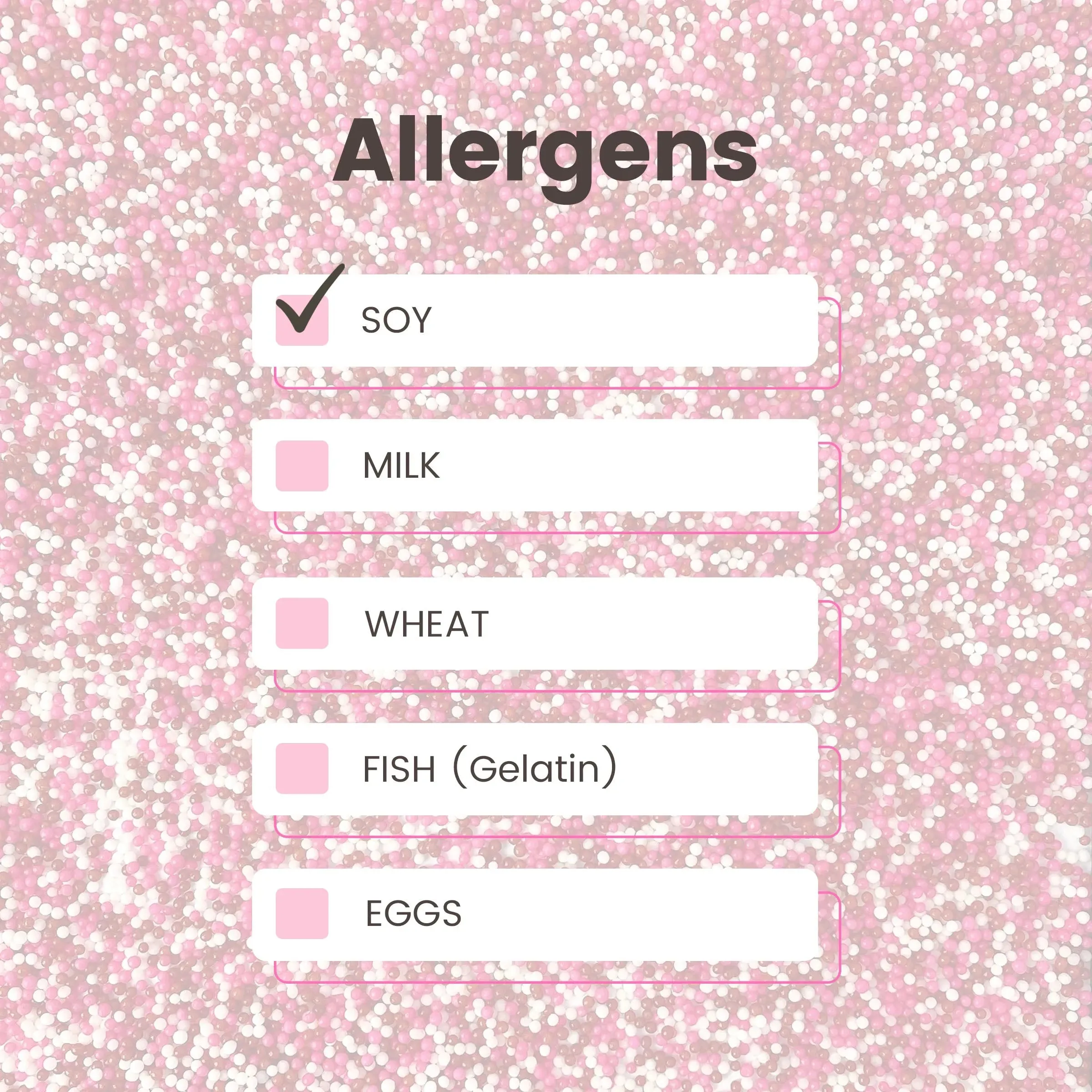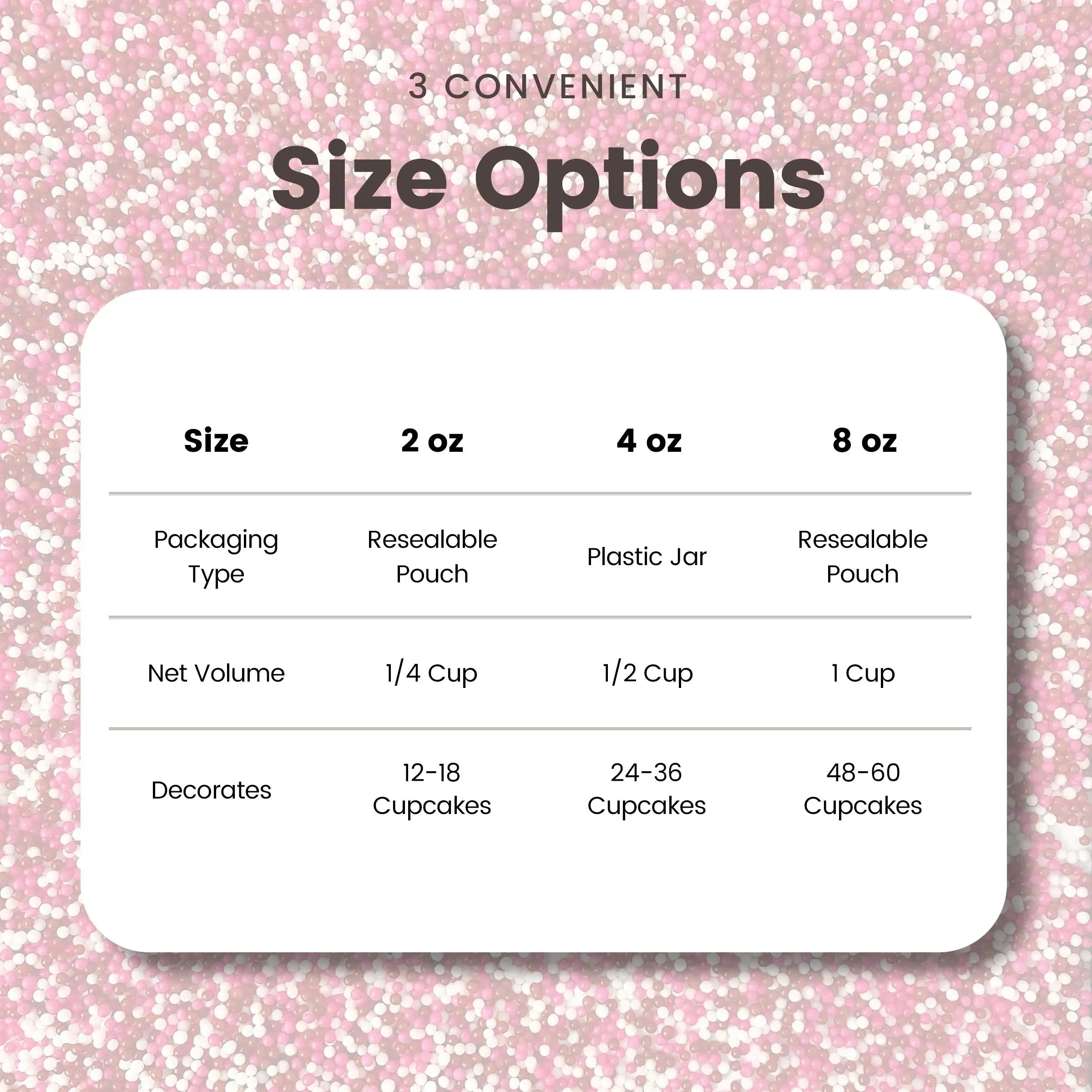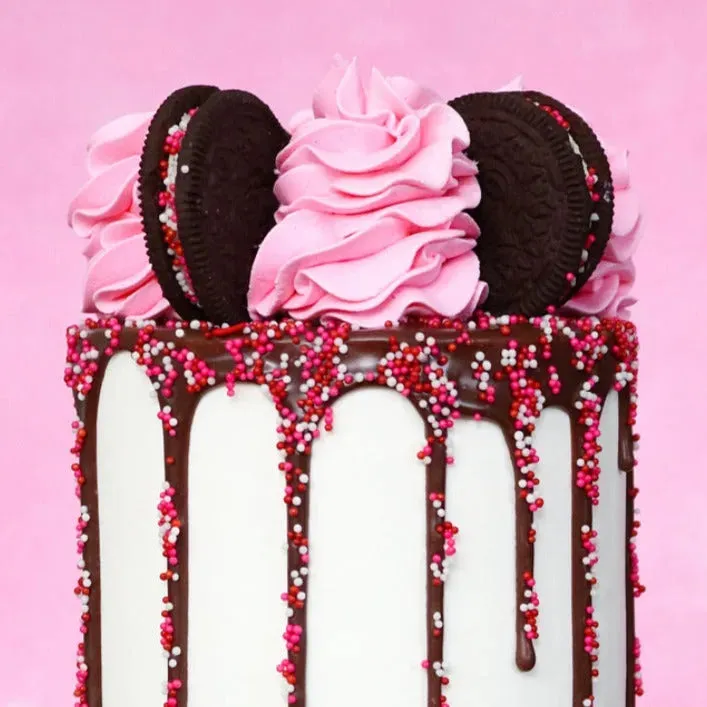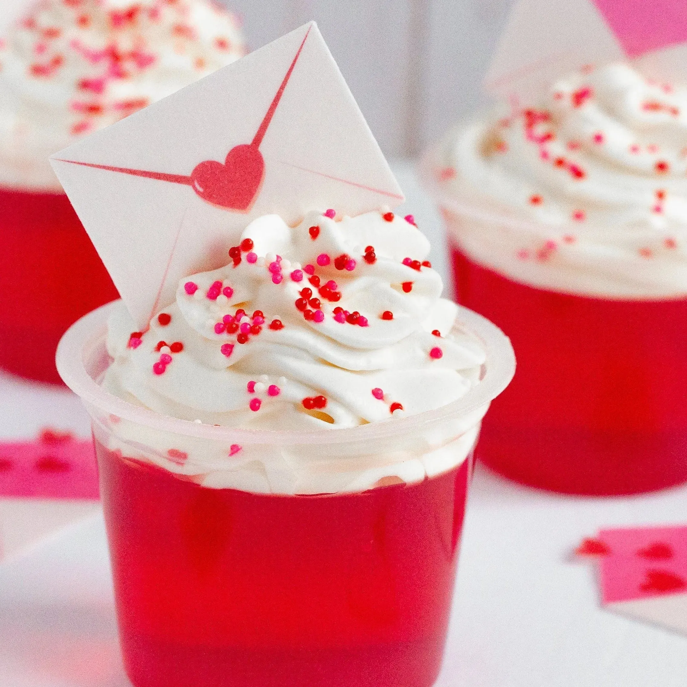Red, pink, and white nonpareil sprinkles.