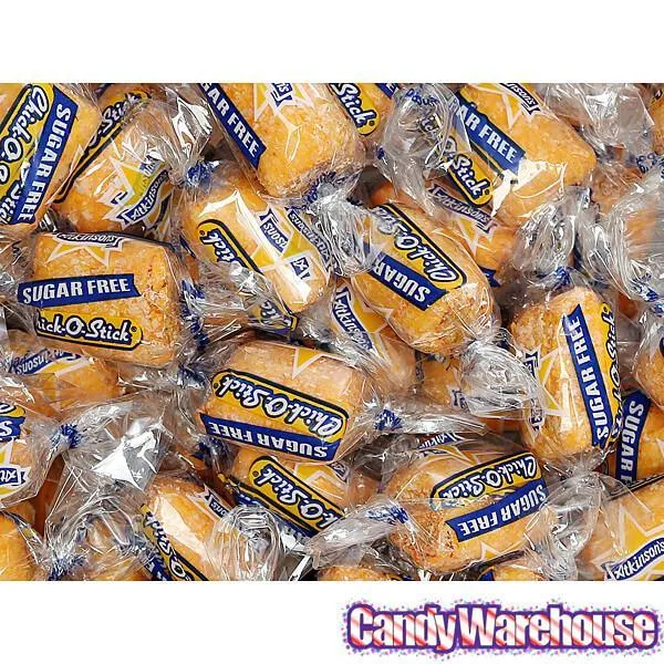 Bag contains 3 pounds of twist-wrapped Sugar Free Chick-O-Sticks Original Nuggets Candy.