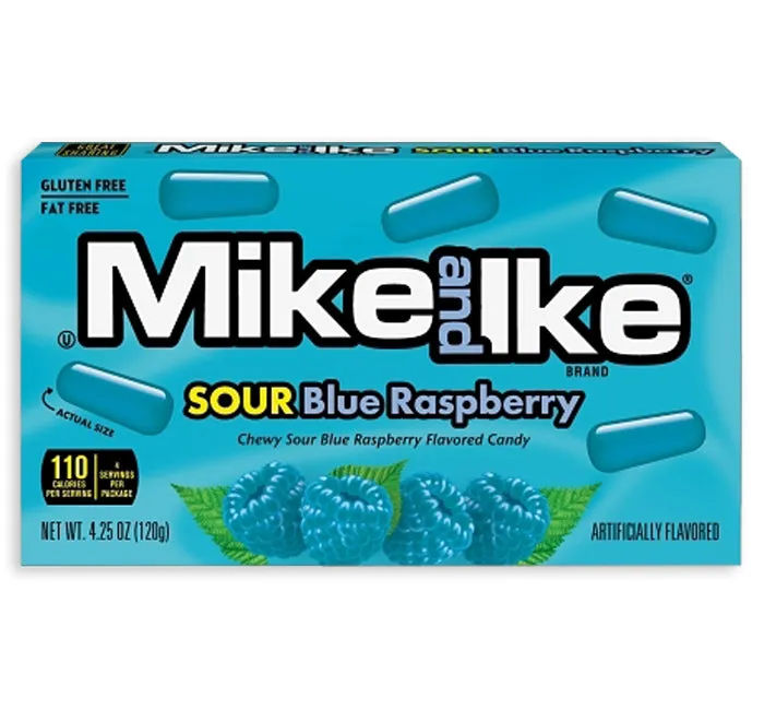Mike and Ike Candy - Sour Blue Raspberry Theater Box: 12-Piece Case