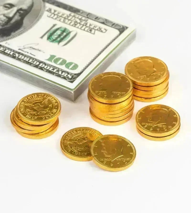 Gold Foil Chocolate Coins: These rich, melt-in-your-mouth milk chocolates are wrapped in shining gold foil—perfect for adding a touch of elegance to any treat.