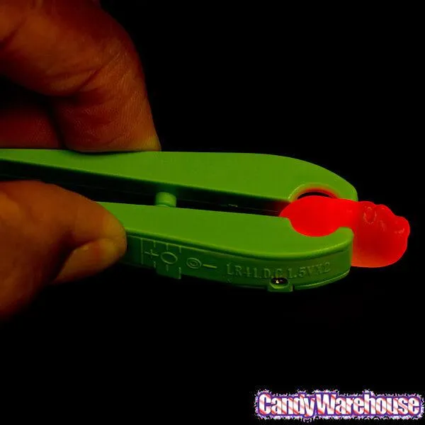 Each pack includes tongs and a pack of gummy grubs. When you grab a bug with the tongs, a light in the end of the tongs magically illuminates the bug with an eerie glow...thereby creating a yummy Lightning Bug!