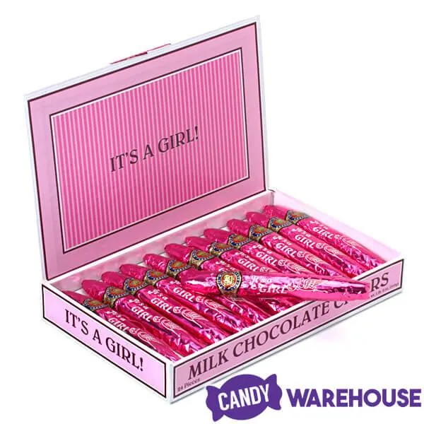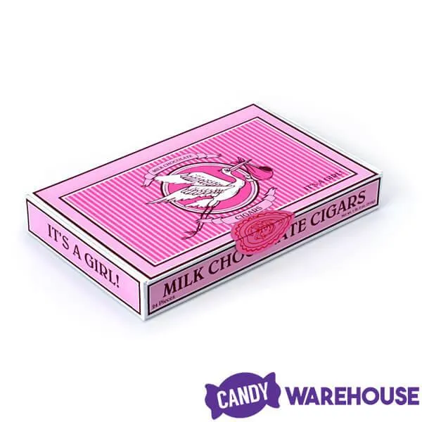Display box includes 24 Pink Foiled Milk Chocolate Cigars, each with a net weight of 0.75 ounces.