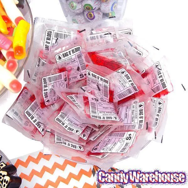 Bag includes 12 Bag O' Blood Mini Blood Bag Candy Pouches.