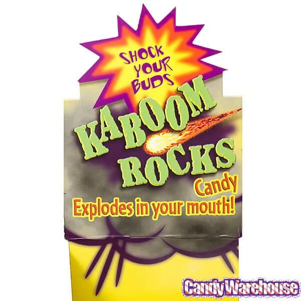BAM! KABOOM! Experience the combustible surprise of Kaboom Rocks! Magical stones discovered on a remote planet and retrieved by NASA robotic vehicles have been ground into pebbles in a mortar and pestle here on Earth. Packaged in test tubes for further experimentation in your mouth, this candy gravel will deliver a multitude of explosive shocks to your taste buds.