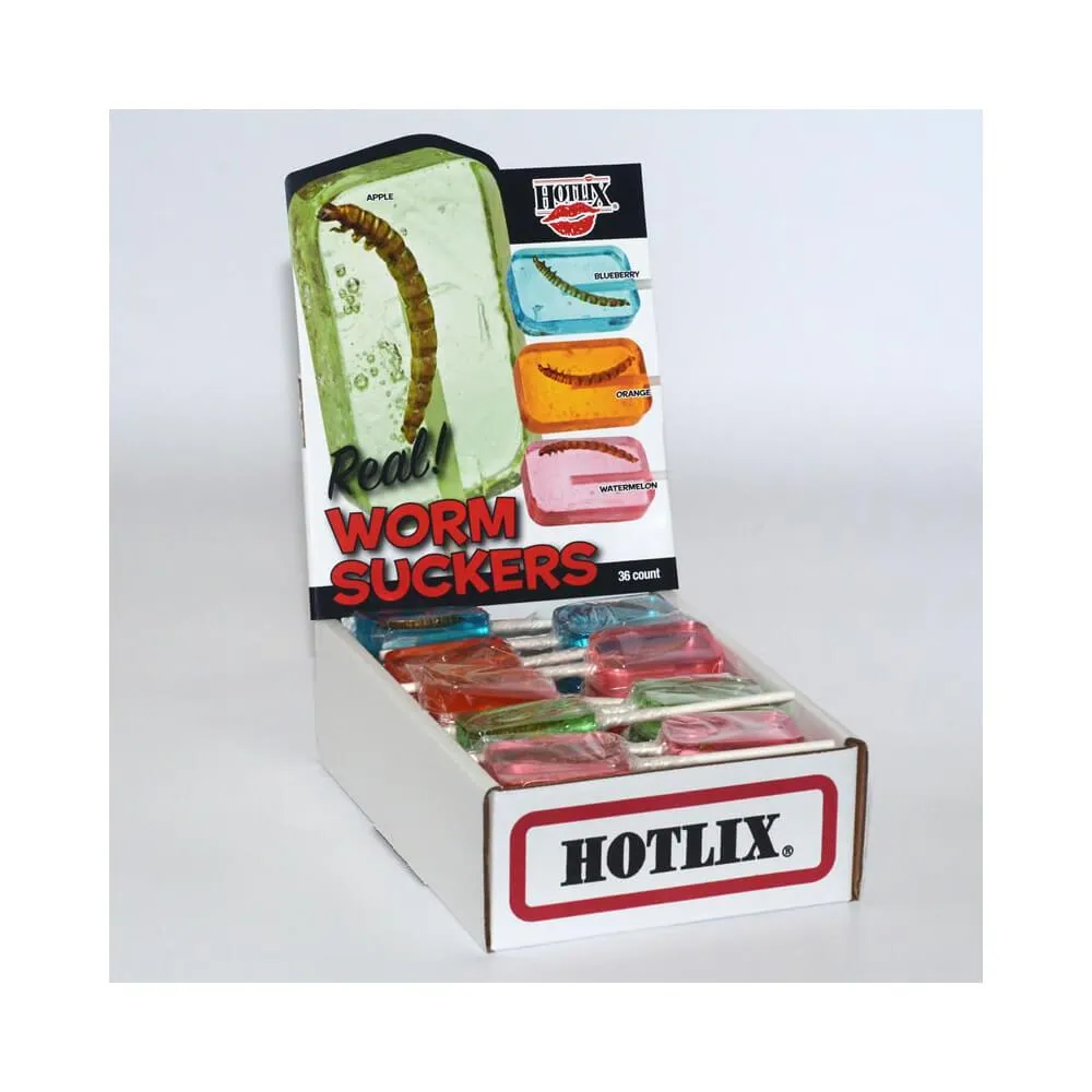 Hotlix Worm Suckers Assorted Fruit Flavors: 36-Piece Box