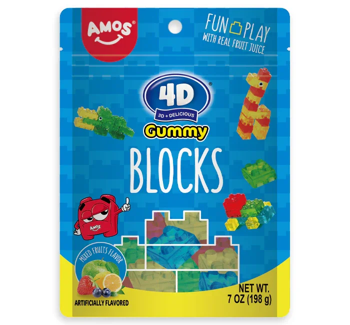 Amos 4D Gummy Blocks Peg Bag: 12-Piece Case