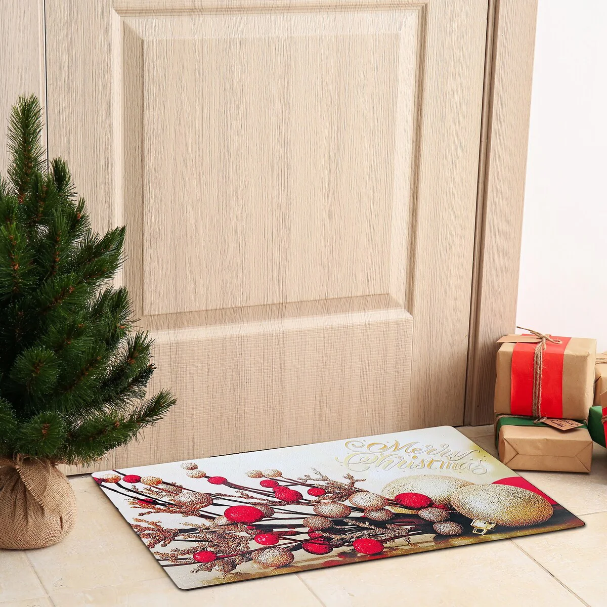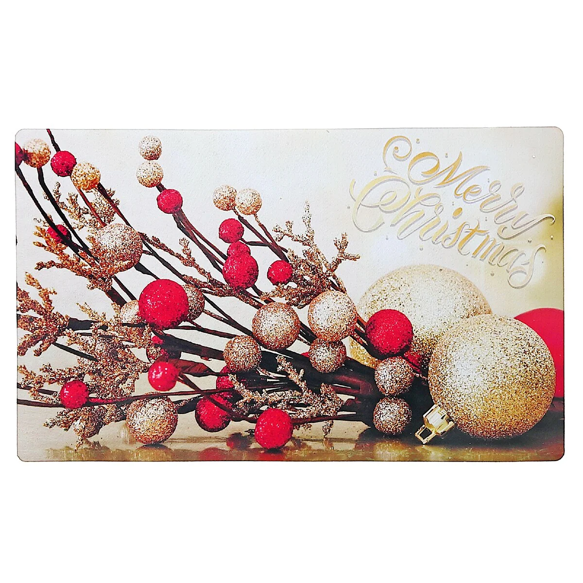 Christmas Printed Rubber Mat Red Gold Ornaments