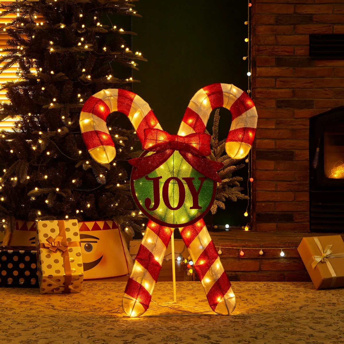 Glitzhome 35"H Lighted Christmas Candy Cane Decor with 60 LED Lights - 3D Candy Cane