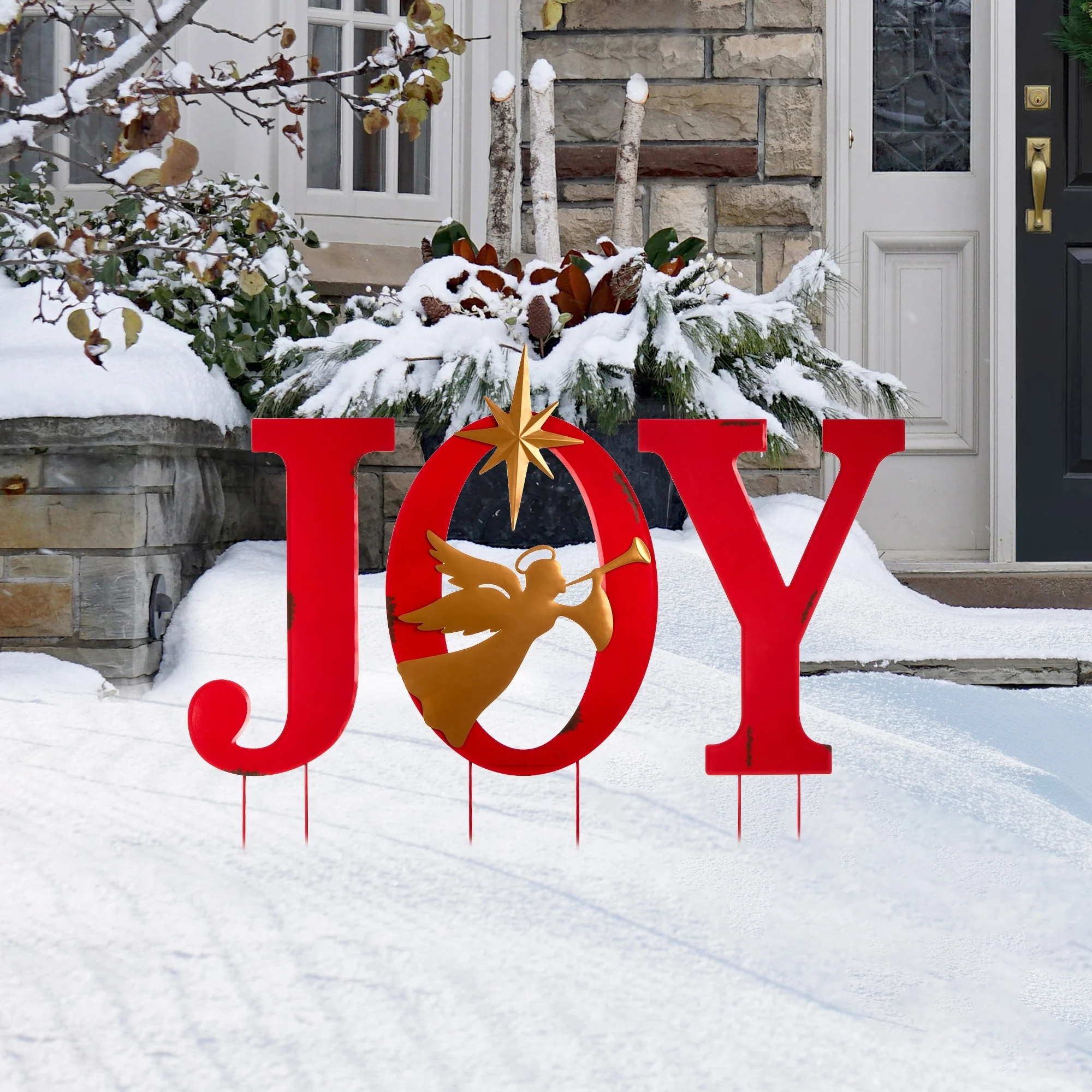 Glitzhome Christmas Metal JOY HOPE Sign Snowmen Yard Stake Wall Sign Standing Decor