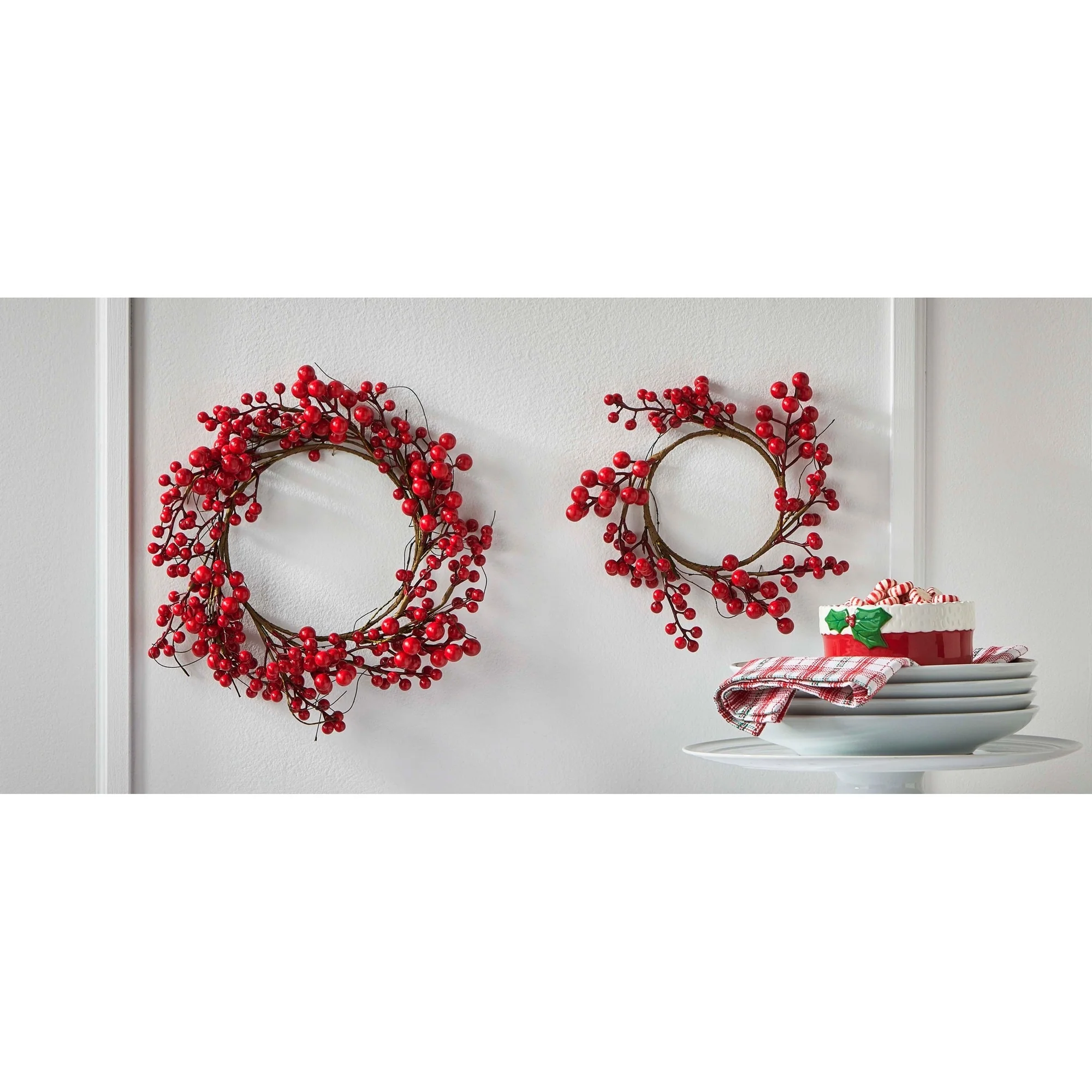 Large Red Berry Artificial Floral Wreath, Holiday Christmas Wall Decoration 15"