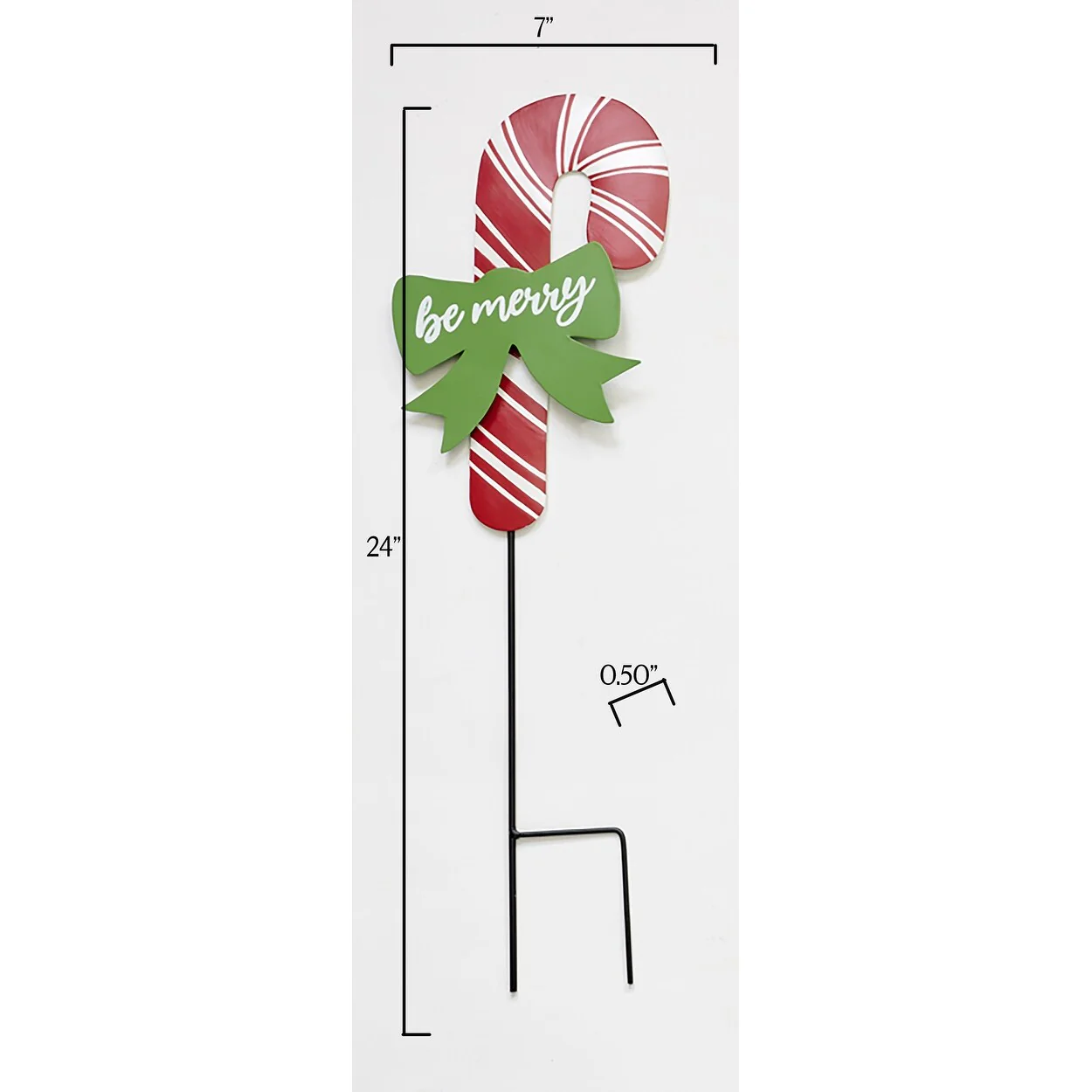 Brighten up your holiday outdoor decor with this 12" Metal Christmas Candy Canes on 12" Stakes, Set of 3. Crafted from sturdy metal, each candy cane features vibrant red and white stripes, adding a classic Christmas touch to your yard or garden. With a double prong for added stability, these festive candy canes are perfect for lining pathways, driveways, or creating a cheerful holiday display.