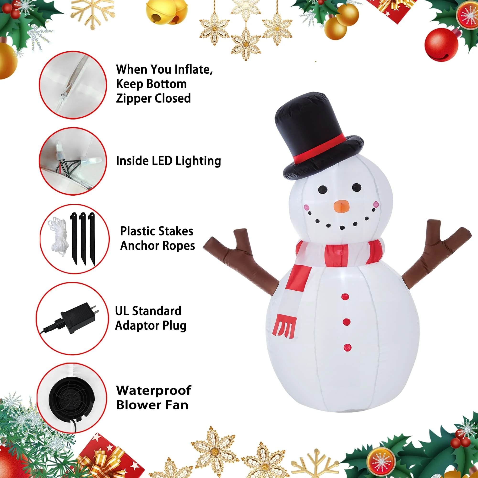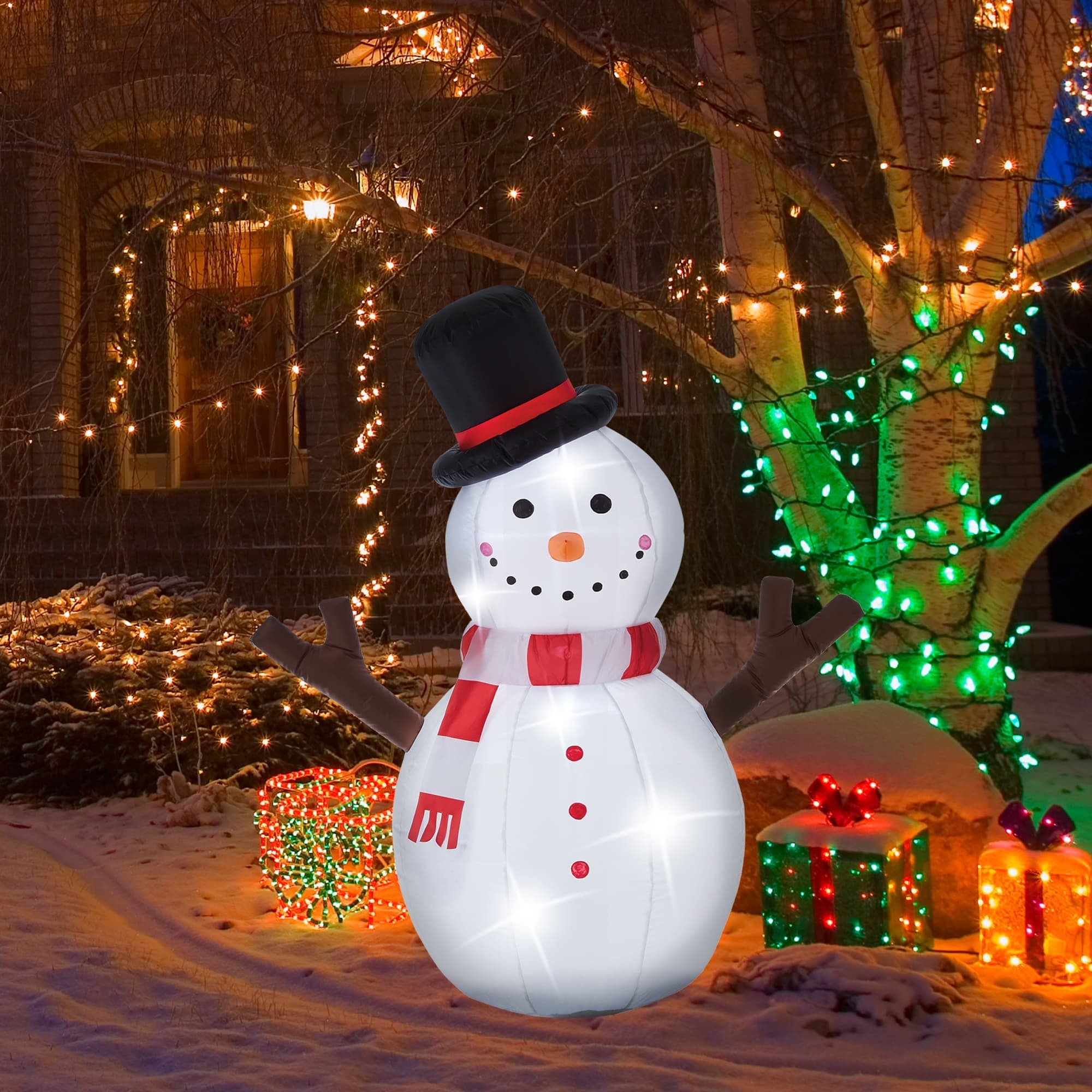 Let it snow, let it snow, let it... blow... UP into this adorable little snowman, with an equally cute little set of inflated stick hands, a festive scarf, a charming black top hat, and all the rest you've come to expect of the unforgettable holiday icon. Its lightweight, self-inflating design make for an easy set up in mere moments, as its rugged, weather-resistant polyester construction offers lasting enjoyment.