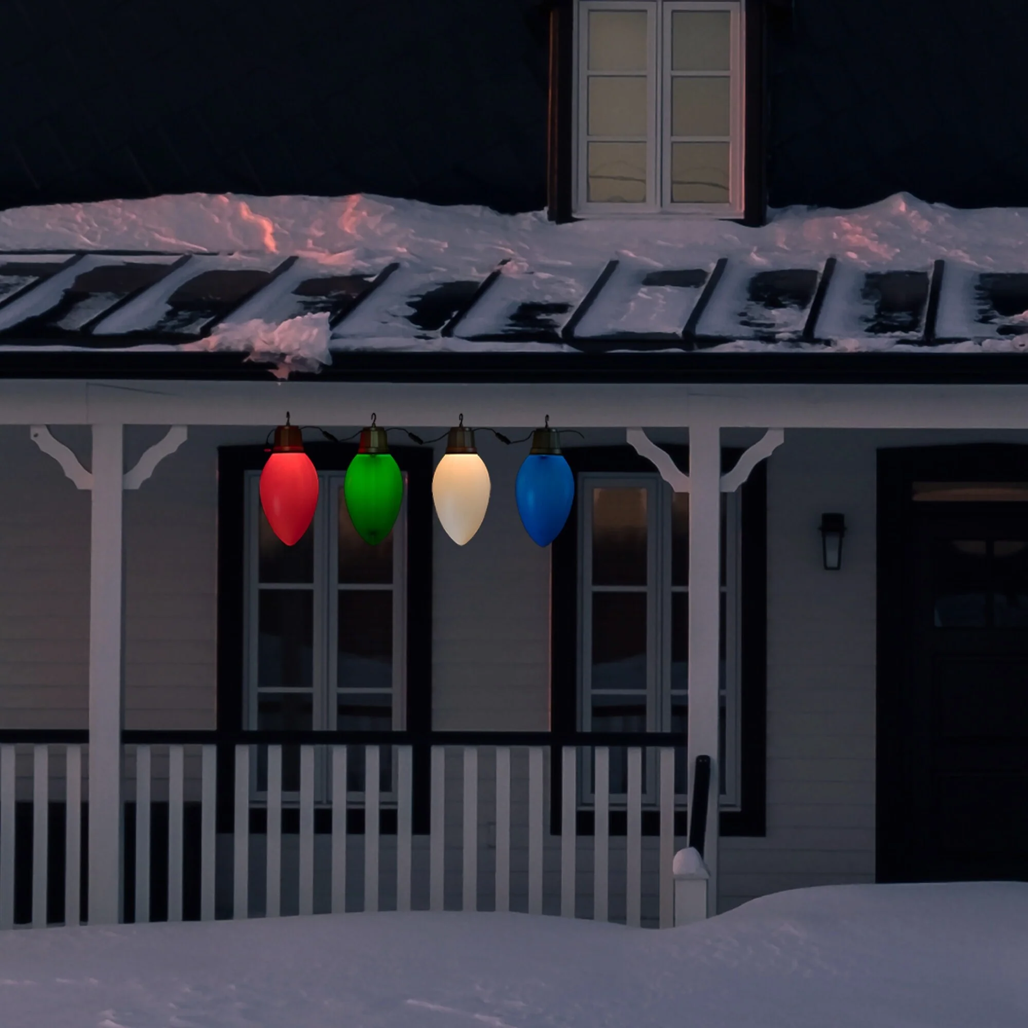 Add a retro touch to your outdoor holiday display with these blow mold-constructed light bulbs. The blow mold construction lends to that nostalgic feel while adding a pop of color and a warm glow to your holiday decor. Designed with green, white, red, and blue light covers, you can let the festivities begin. It is just perfect for outdoor decorating in your yard, porch, and patio.
