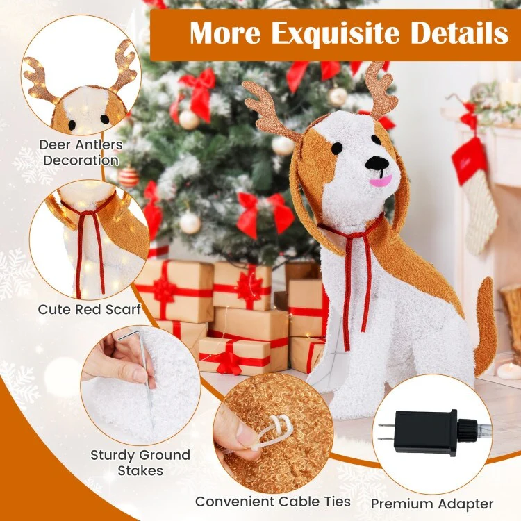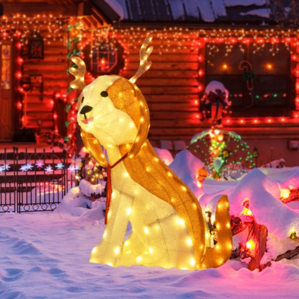 - Lighted Christmas Dog: Featuring 164 brilliant built-in LED lights, this adorable Christmas dog illuminates your living space and creates a warm festive atmosphere. You can display it in your yard, porch or living room when needed.