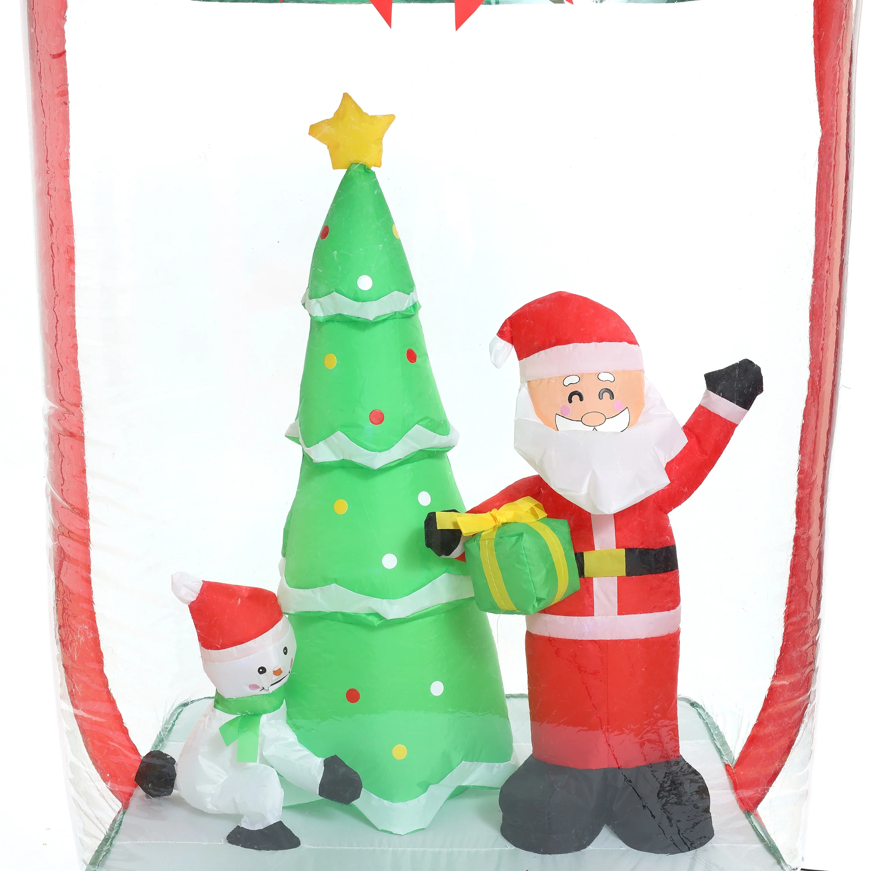 - The Santa, snowman and Christmas tree inflatable with lights is designed for fast installation and can be easily inflated using the built-in blower, making it a quick and convenient addition to your yard or large room.
