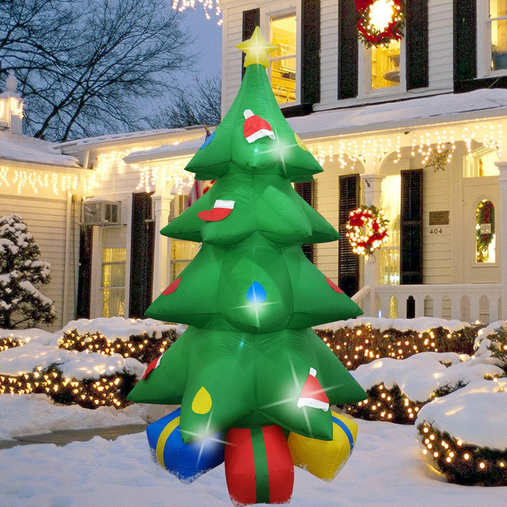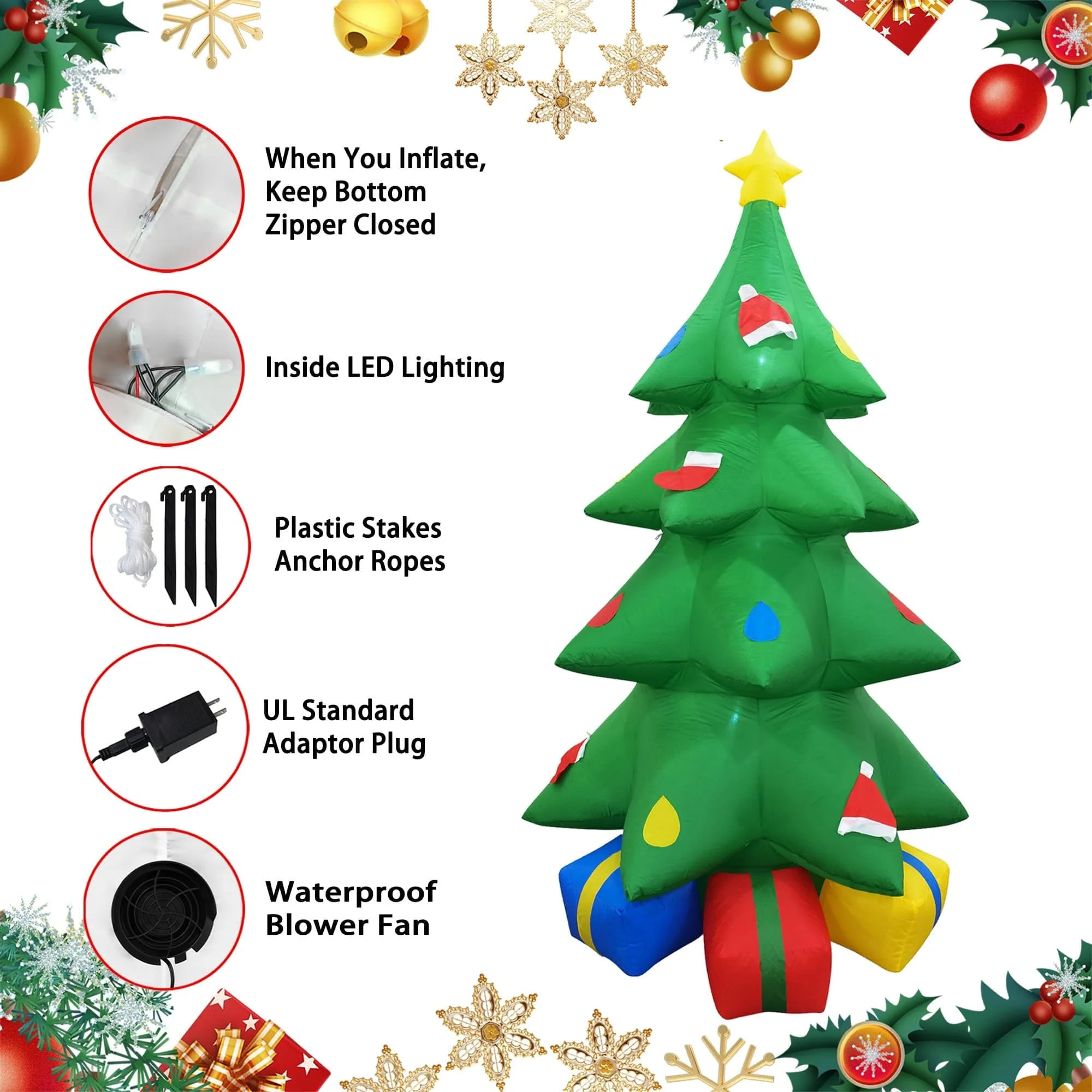This inflatable is great for decor in and out of the home. It can also be a great addition to your family photo. The lightweight materials and self-inflating design make it easy for anyone in the family to setup and take down.Self inflates in moments.Weather resistant polyester.