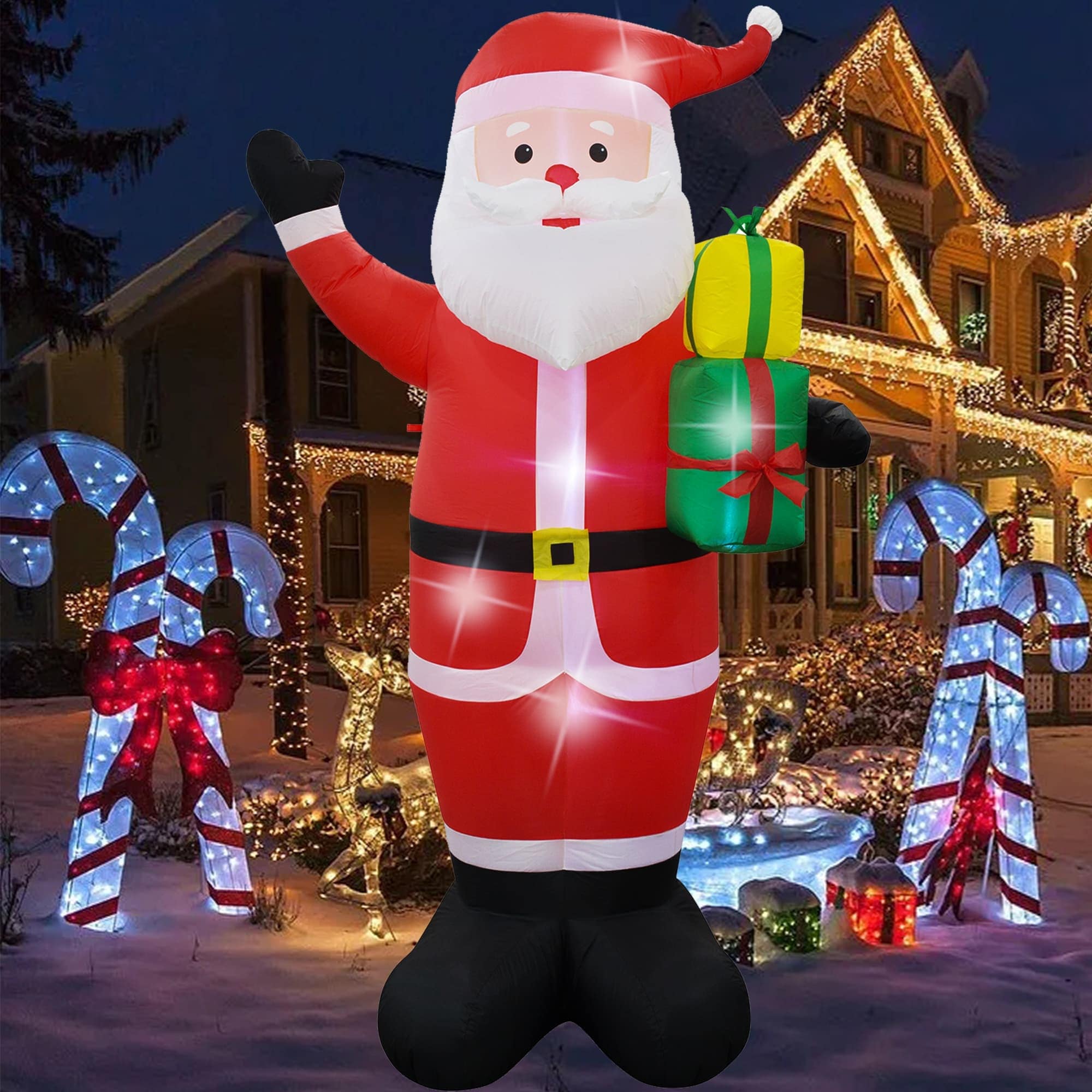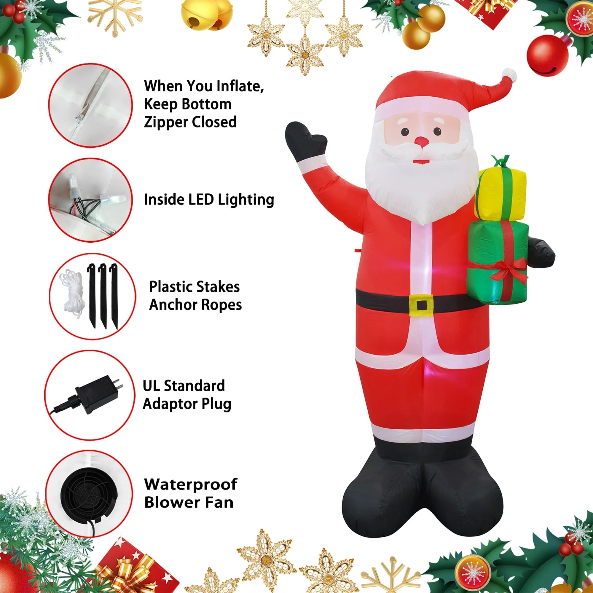 This inflatable is great for decor in and out of the home. It can also be a great addition to your family photo. The lightweight materials and self-inflating design make it easy for anyone in the family to setup and take down.Self inflates in moments.Weather resistant polyester.