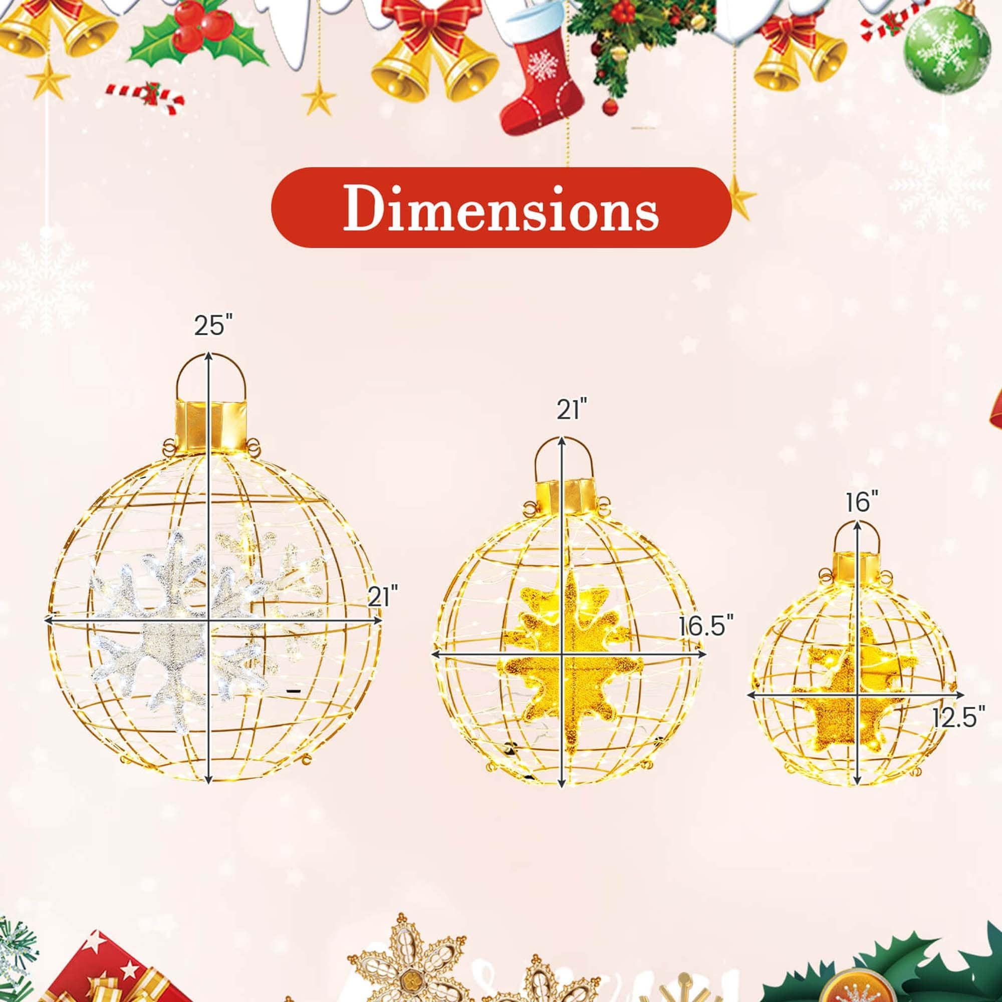 732 bright LED lights to make these balls a standout presence