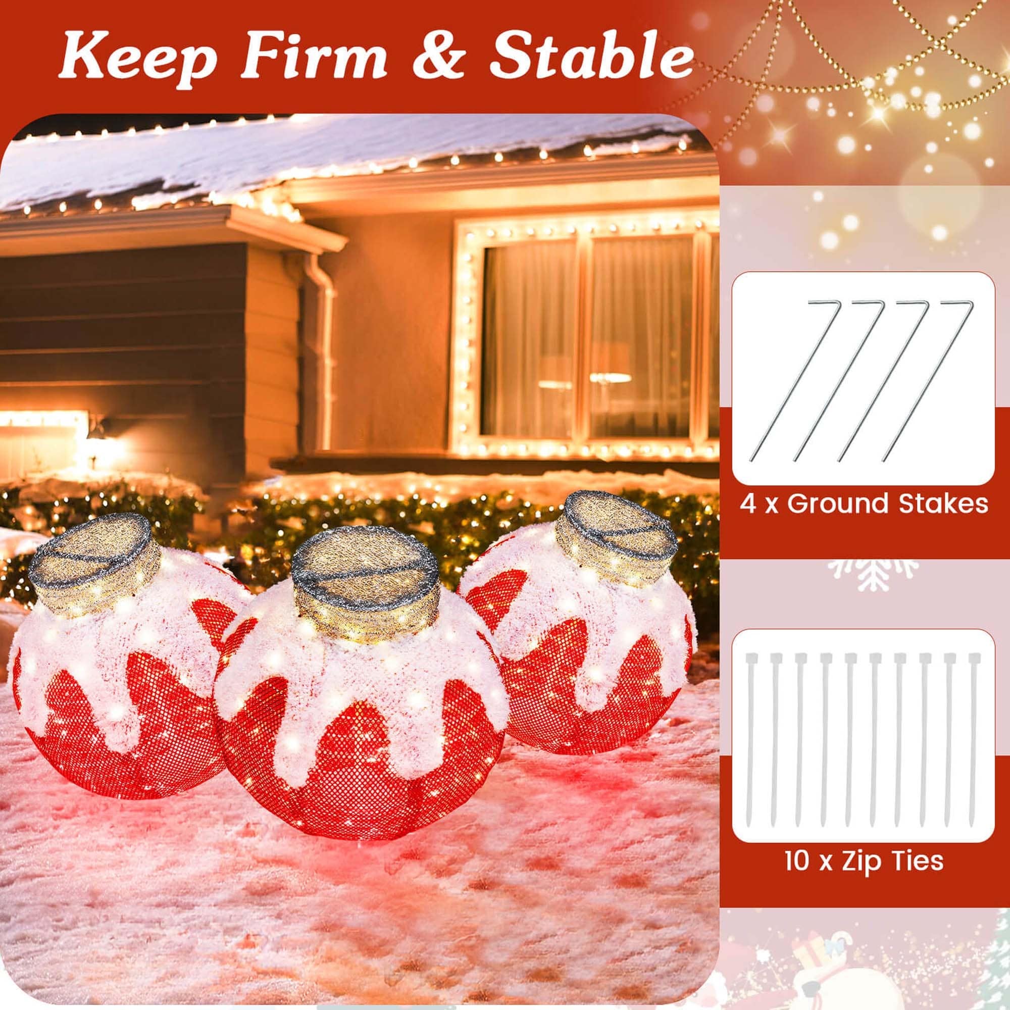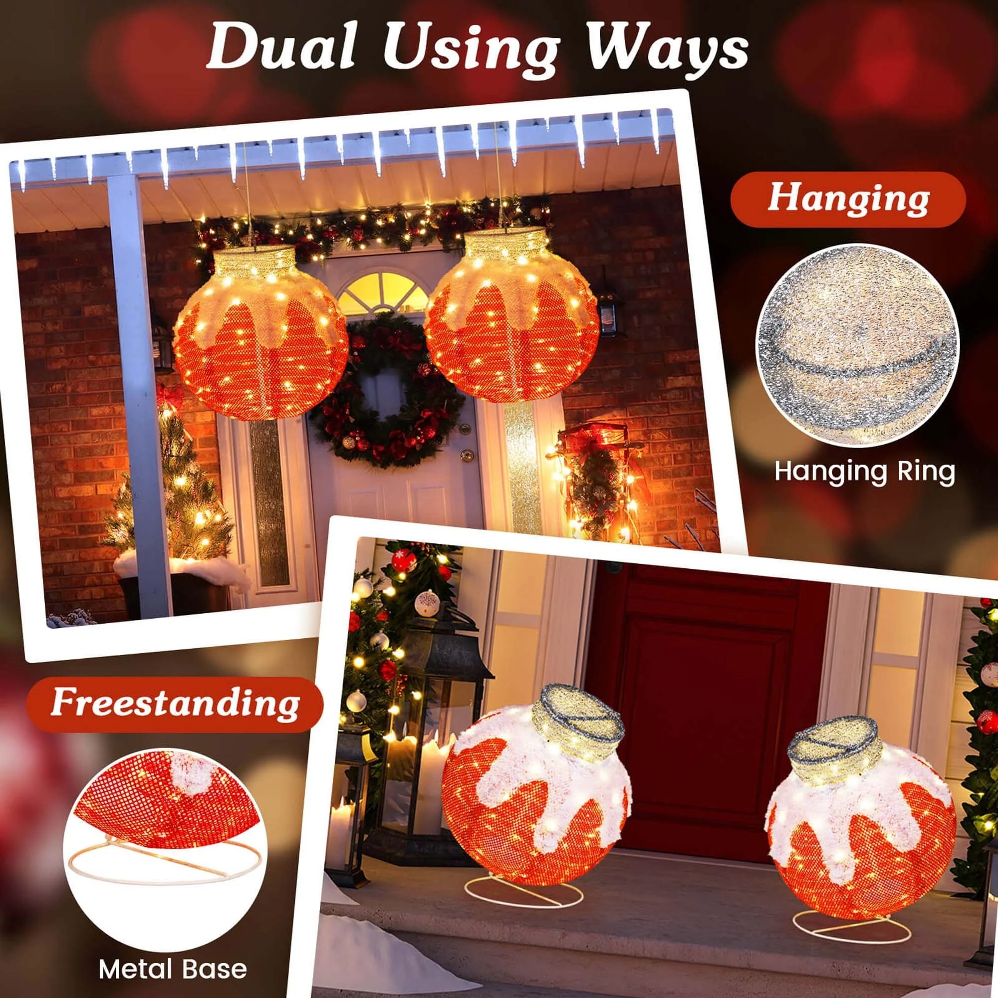 Crafted with weatherproof materials, the Christmas lantern is designed to withstand long-time outdoor use, ensuring your festive display remains bright and beautiful all season long. With dual hanging and freestanding options, this lantern is versatile and easy to install, making it the perfect addition to your home or garden. Embrace the magic of the holidays with this lantern that combines style, functionality, and durability, creating a warm and inviting glow for all to enjoy.