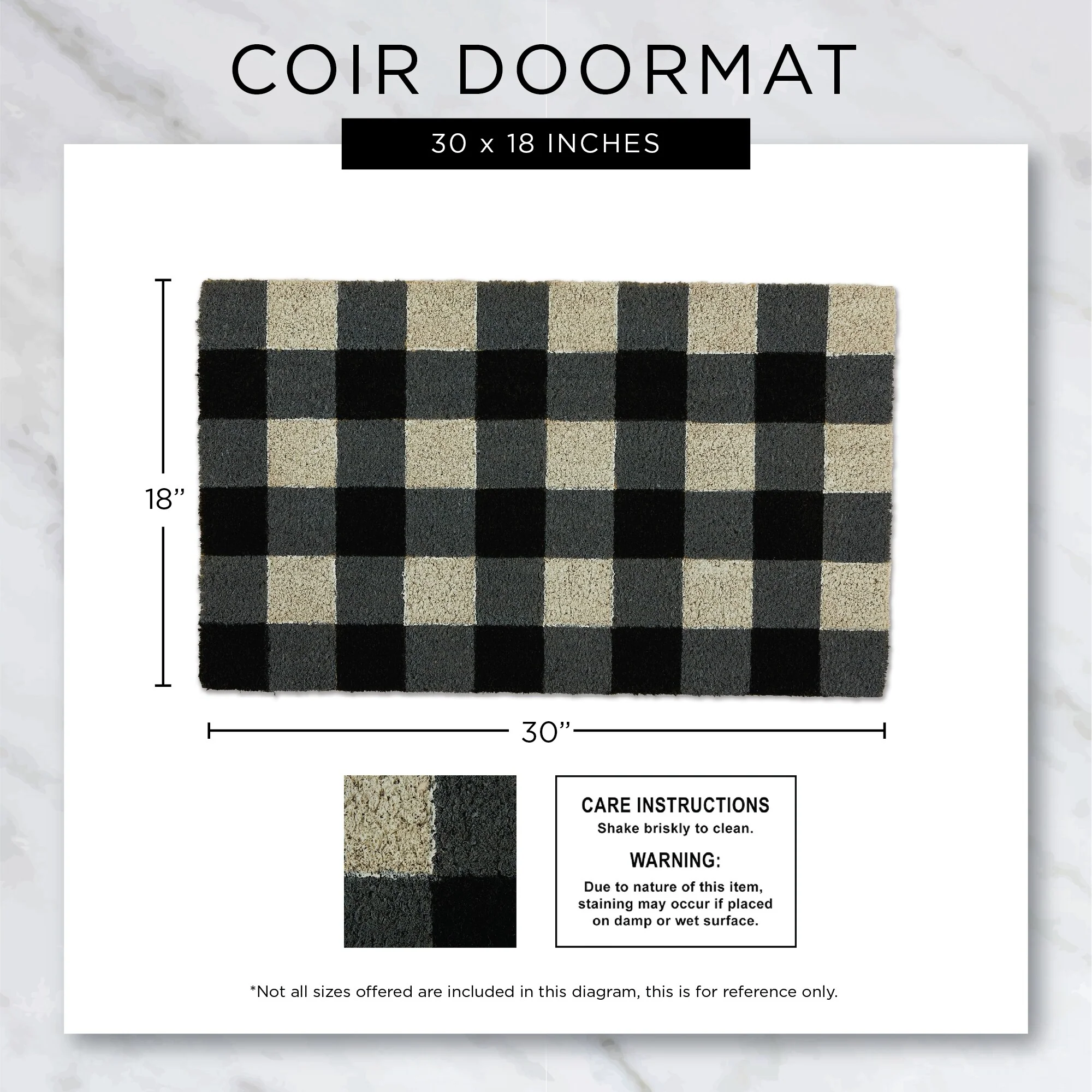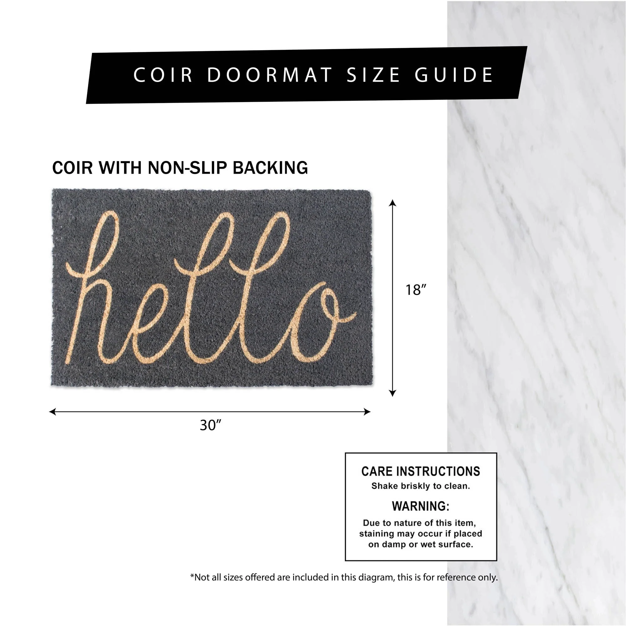 These doormats are available in a variety of cute and colorful styles. You will be able to find one that is just right for your home year round or swap out for a seasonal design. Durable and Non-Slip. This 17x29-inch doormat is made of 100-percent coconut coir fiber and provides the perfect surface for guests to wipe their shoes on before entering your home.