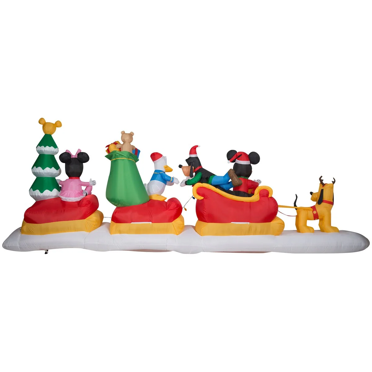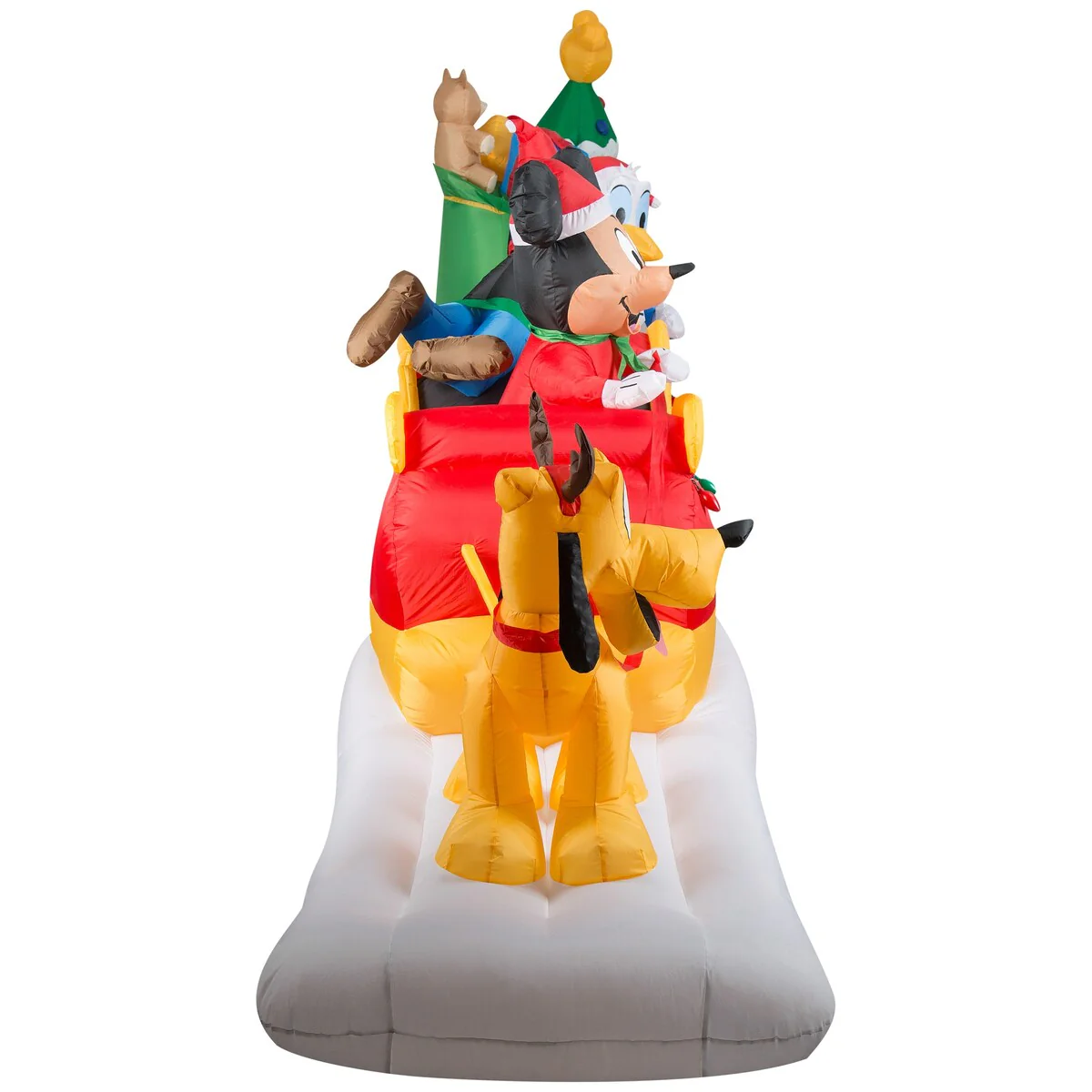 Make a spectacular addition to your Christmas decorations with this amazing Mickey and Friends Airblown® Inflatable! Disney fans will love this animated inflatable featuring Mickey and his best pals delivering Christmas cheer in a bright red sleigh. Mickey waves and Minnie's head turns in this eye-catching inflatable that includes a multicolor light string, bag of gifts, and Christmas tree topped with a yellow Mickey head and ears. This Disney inflatable sets up in a flash for the easiest Christmas decorating ever. Be the talk of the block with an animated Mickey Mouse and Friends Christmas inflatable!