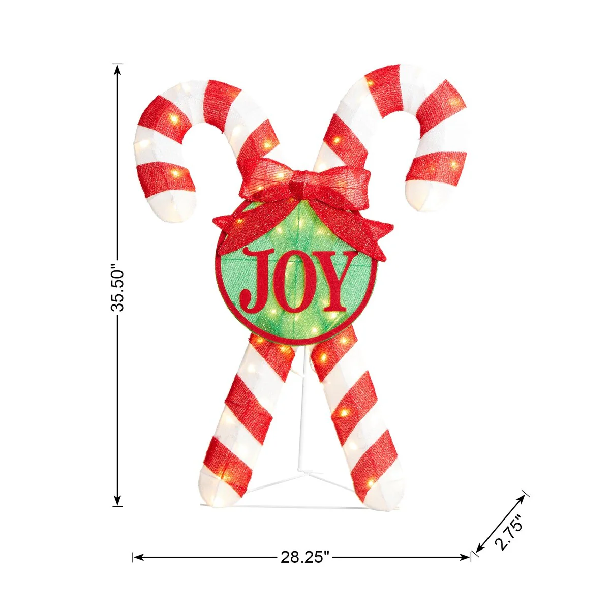 Glitzhome 35"H Lighted Christmas Candy Cane Decor with 60 LED Lights - 3D Candy Cane
