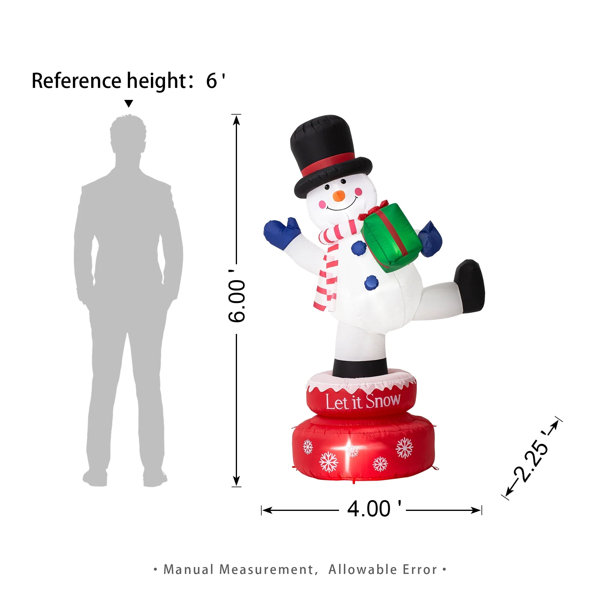 - Snowman Size: 47.25" L * 28.25" W * 73.25" H; Weight: 2.5 lbs