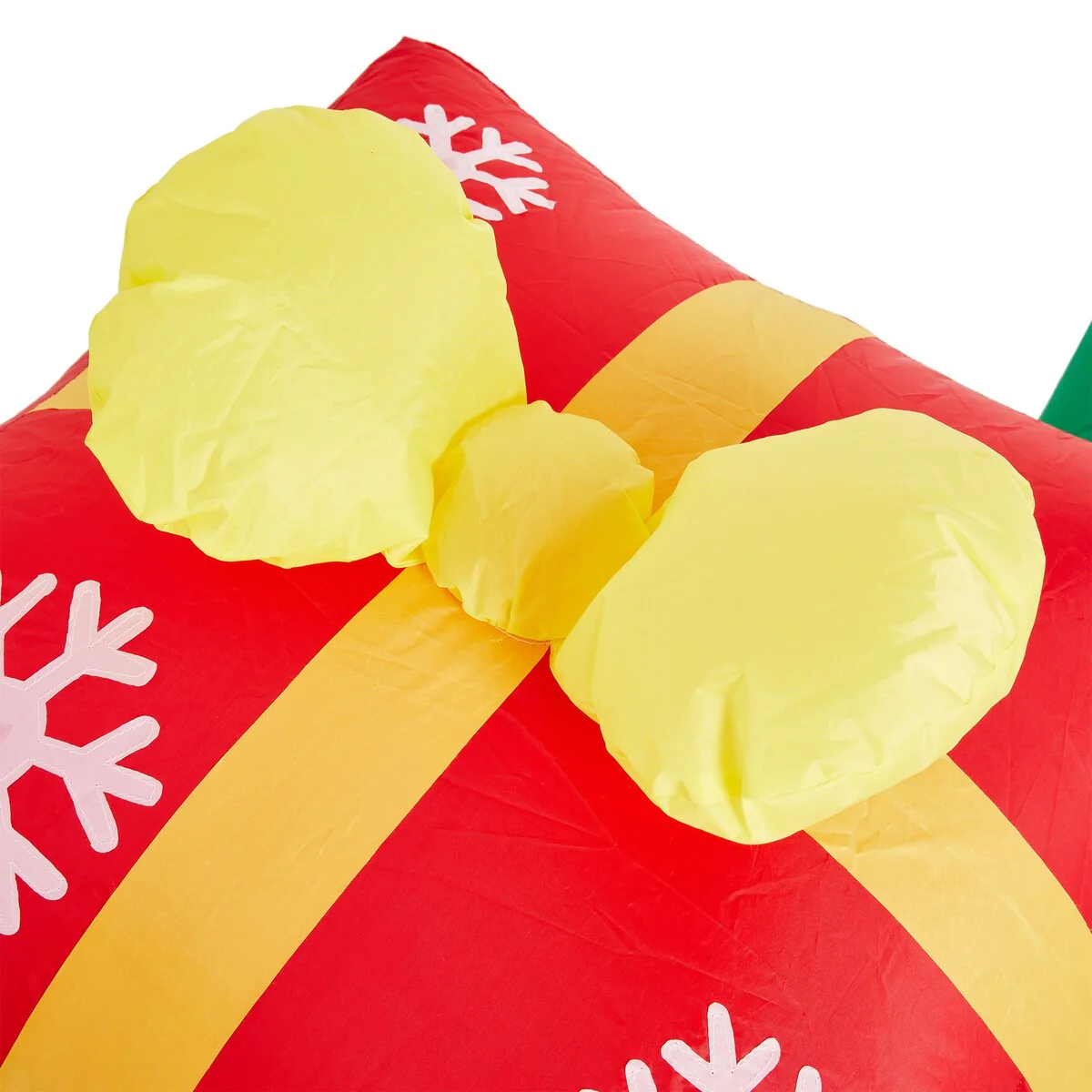 Deck the yard with Inflatable Gift Boxes! Dressed for the season, our classic Gift Boxes inflatable makes a delightful addition to your outdoor Christmas decorations. Set-up is super simple. Just plug it in, stake it down and watch the magic unfold. Display this charming holiday decoration as a standalone or combine it with other Inflatables to create a custom scene. Includes everything needed for easy outdoor setup.
