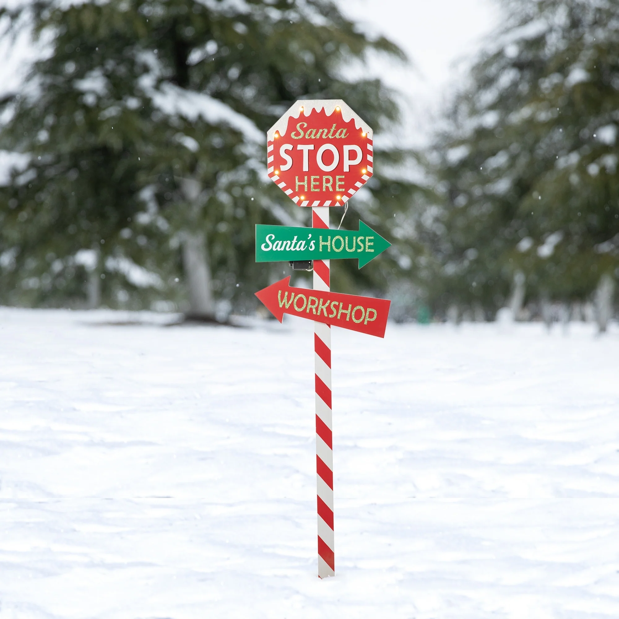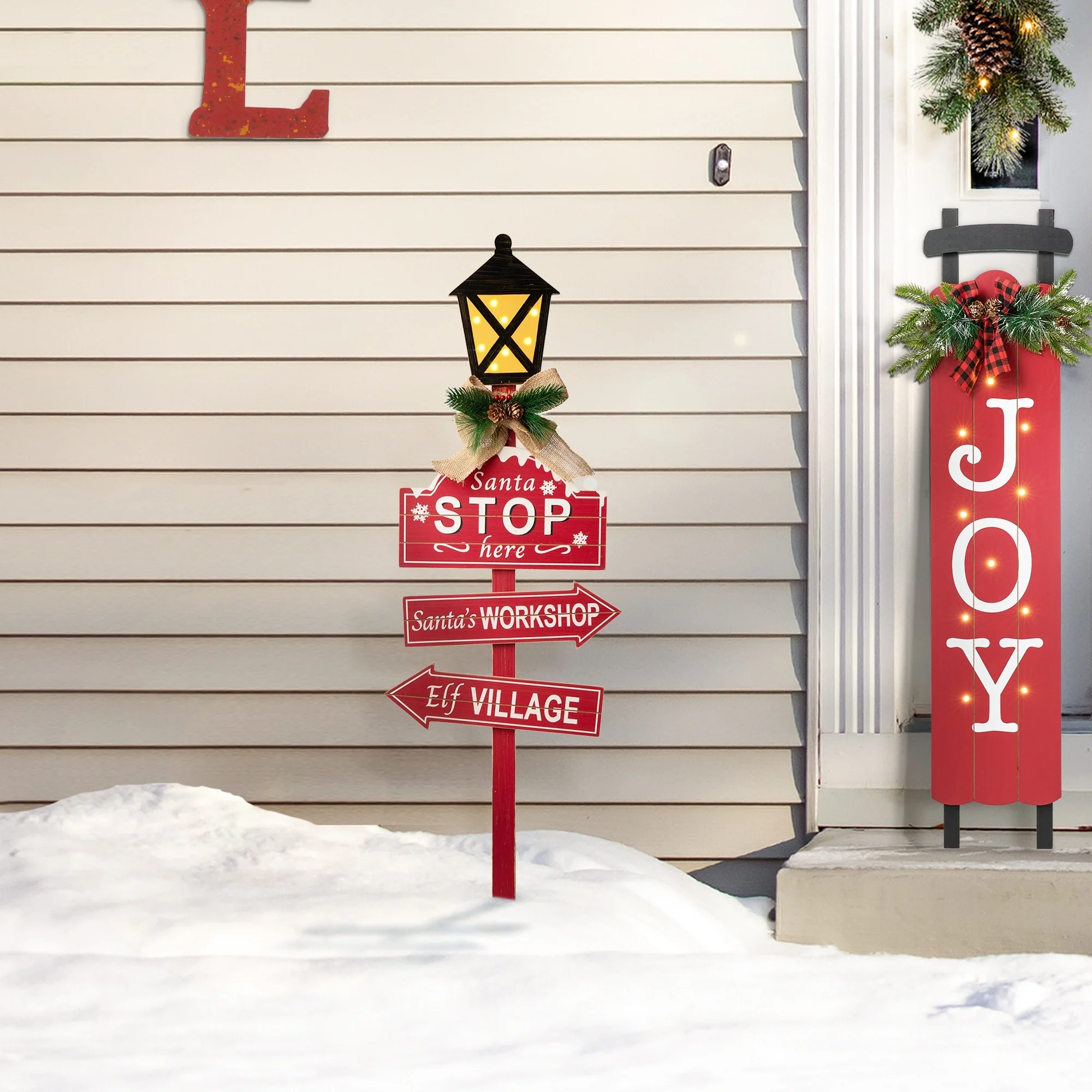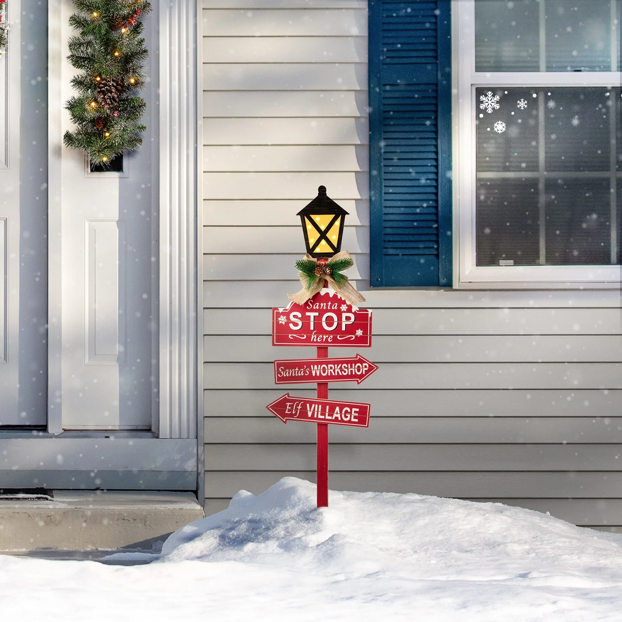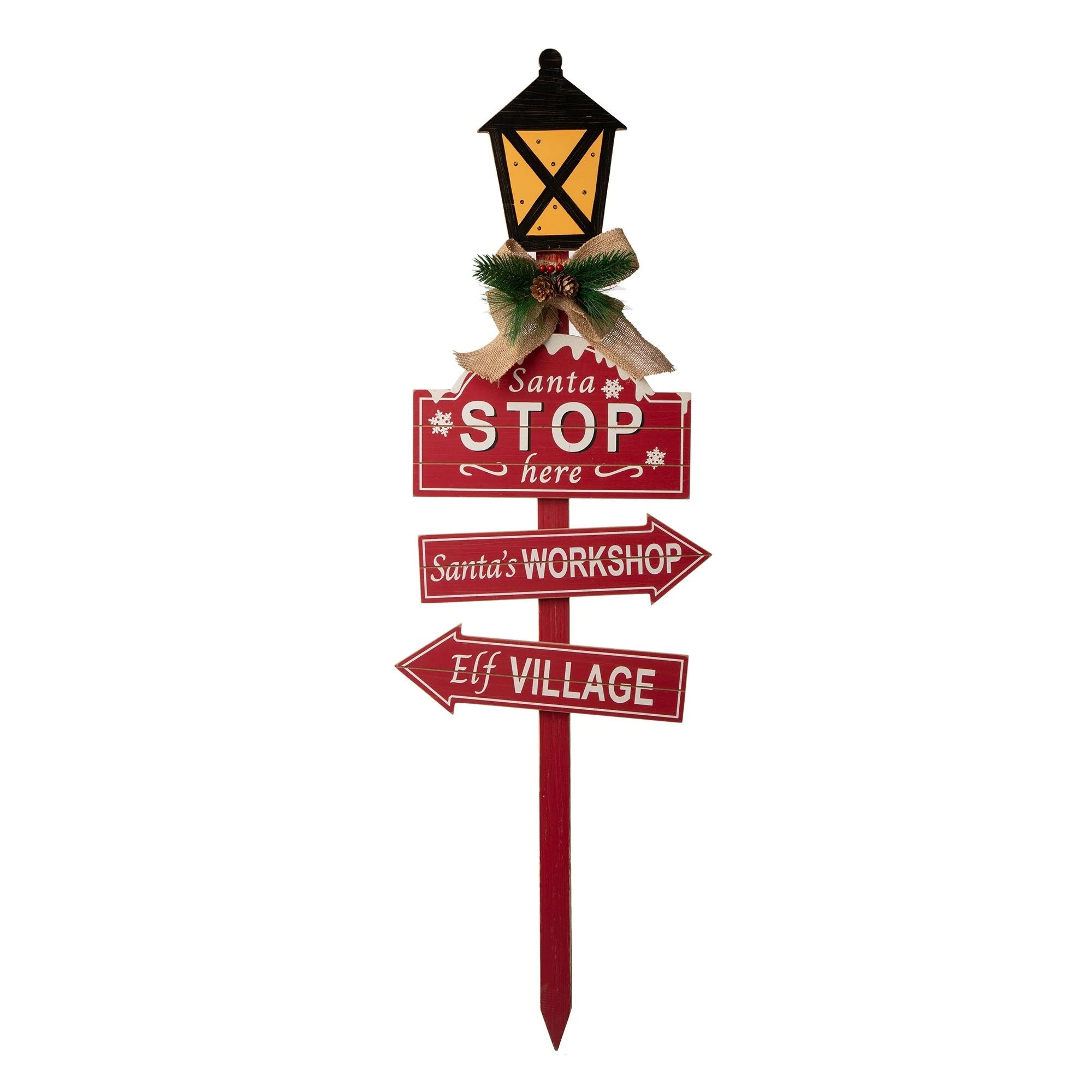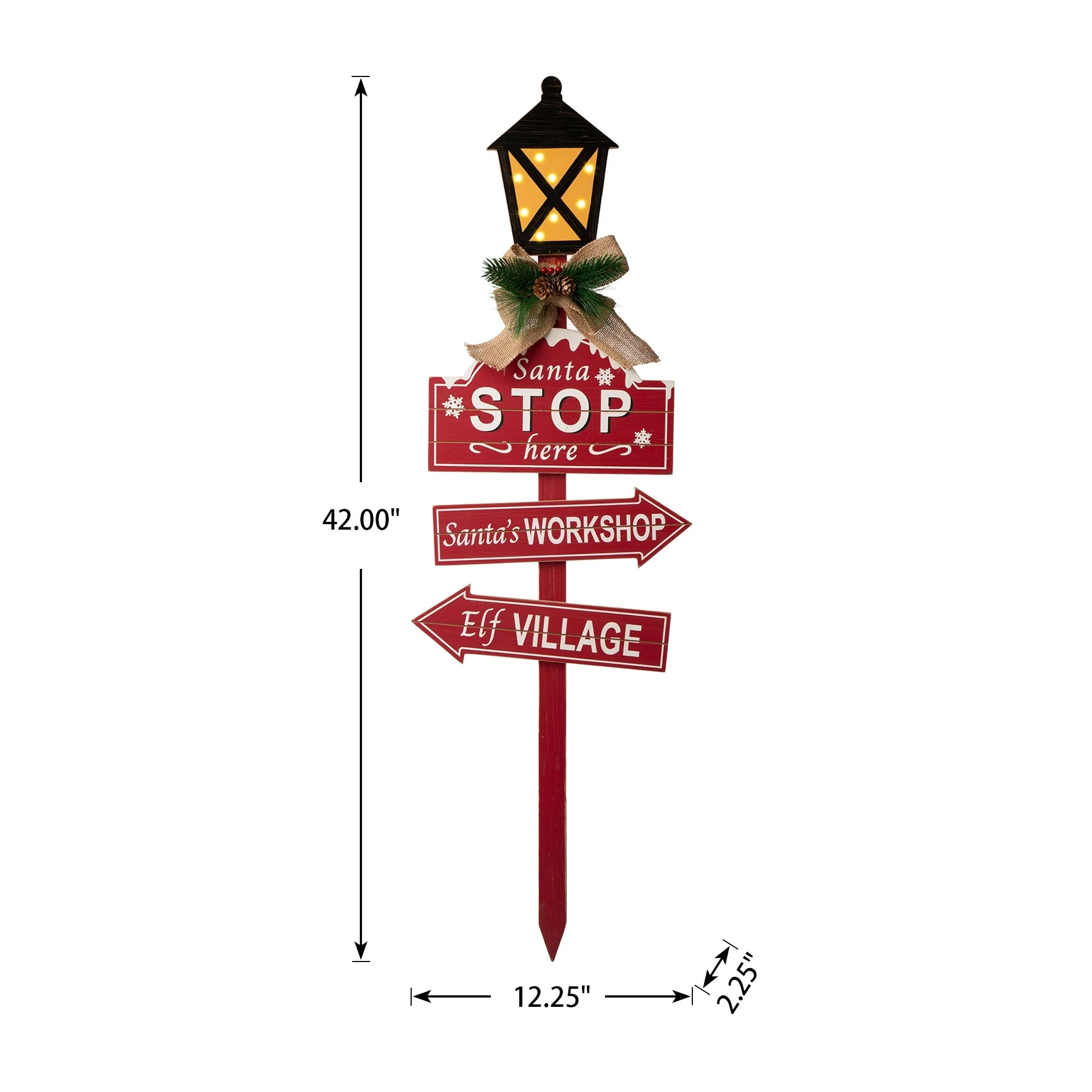 The wooden street lamp Christmas yard stake adds retro charm to lawn, garden, campsite or patio--staked in the ground or standing on its own. LED and the pattern brings a warm feeling. The candy cane yard stake features indicators with Christmas related signs, and melting snow on the top of candy cane, showing the guests the atmosphere of Christmas in your home. With so many unique styles of yard stake, there are endless ways to incorporate these essential outdoor stake accessories into your landscape.