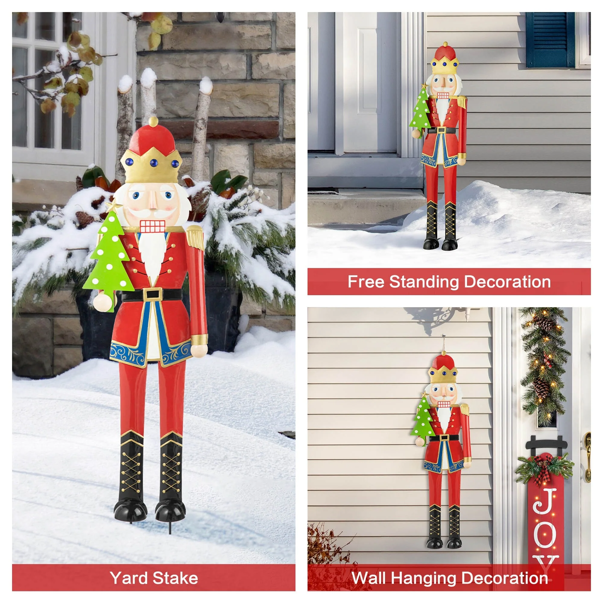 This hand-painted Santa, Snowman or Nutcraker yard stake is made of iron for indoor and outside use. It features Santa holds "ho ho ho", the Snowman wearing a scarf and the Nutcracker holds a chrismas tree in their hands, smiling and waving to you, which will surely enrich your lawn, garden or indoor areas and accent your holiday season. Use it to greet your visitors during the upcoming holiday. Sign has a rope for hanging, and also comes with a short metal stake and screws to convert it into a yard stake.