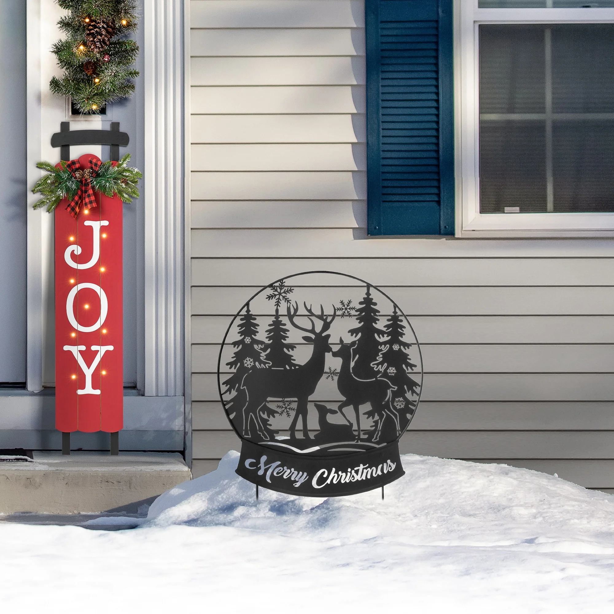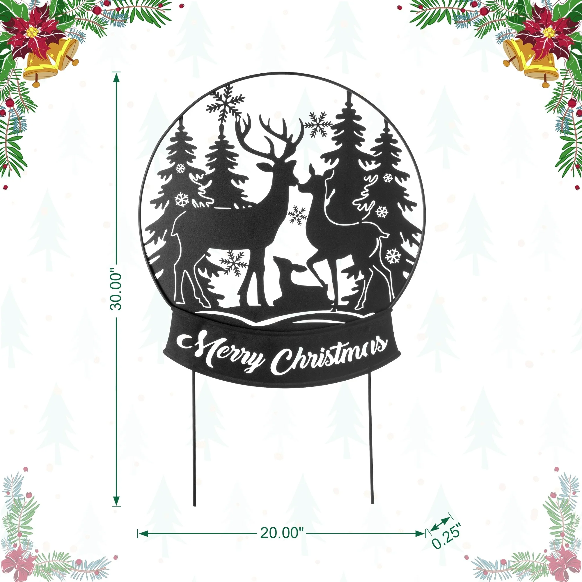 Elevate your Christmas decor with these Christmas Metal Silhouette Reindeers Yard Stakes or Waterglobe with Reindeer Family or ON HOLY NIGHT Yard Stake. Inside silhouette waterglobe, there vividly portrays a heartwarming scene of a reindeer family in the jungle, adding charm and warmth to your indoor and outdoor spaces. Each reindeer is crafted with premium metal, complemented by delicate artificial floral, also adding a touch of elegance and warmth to your indoor and outdoor spaces.