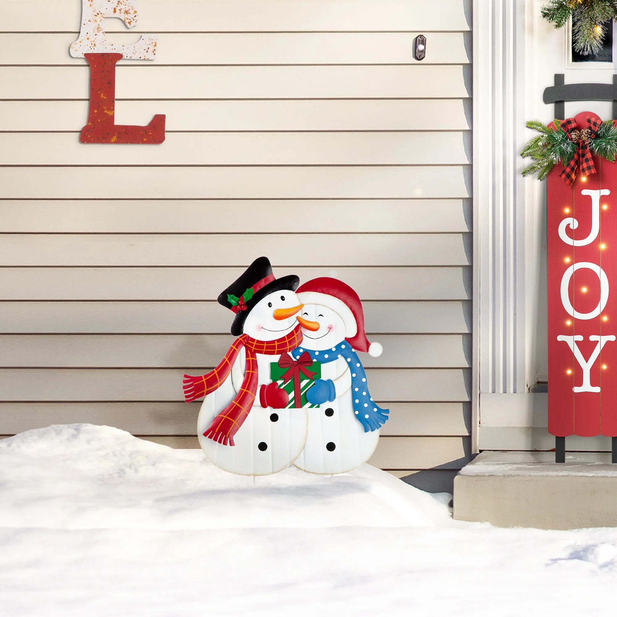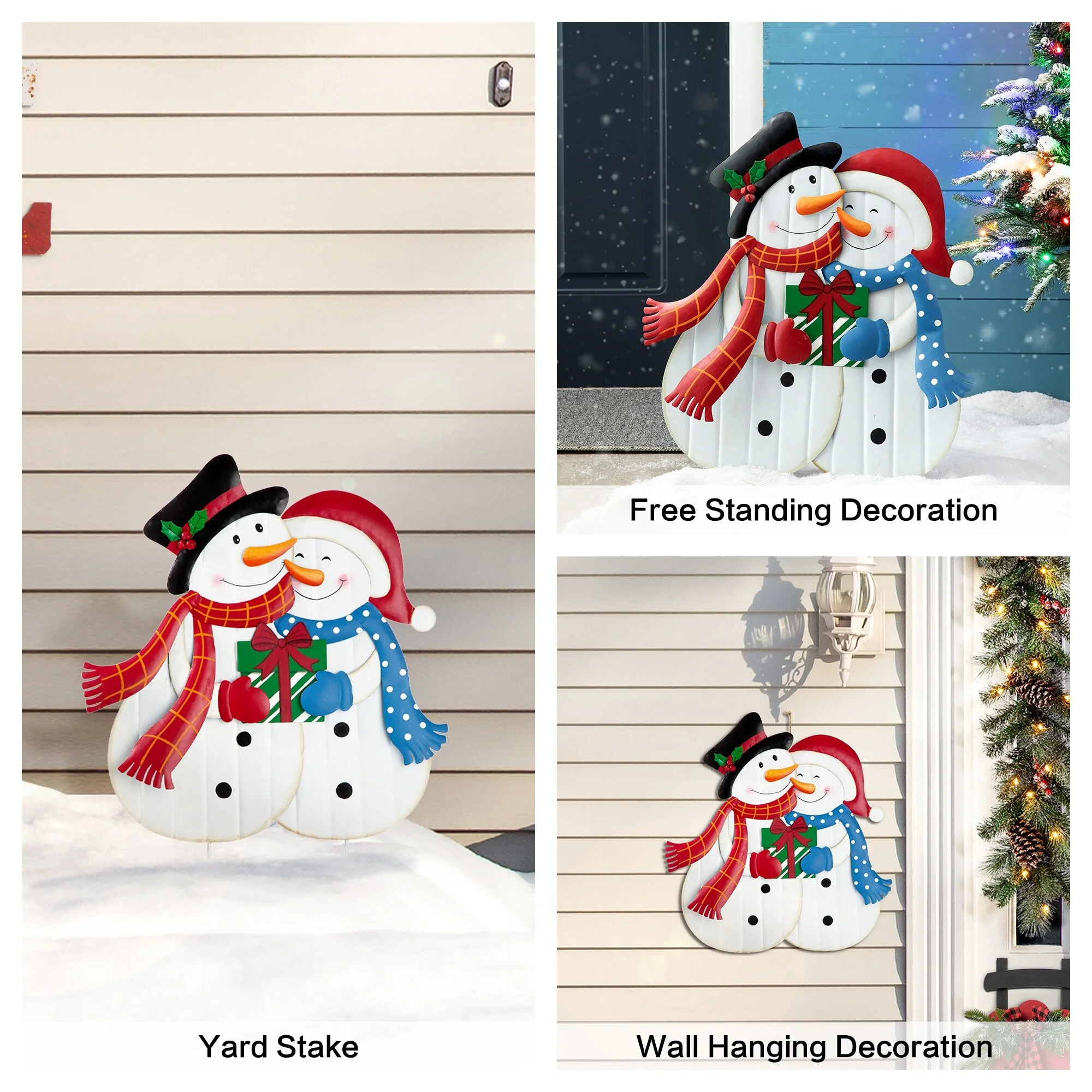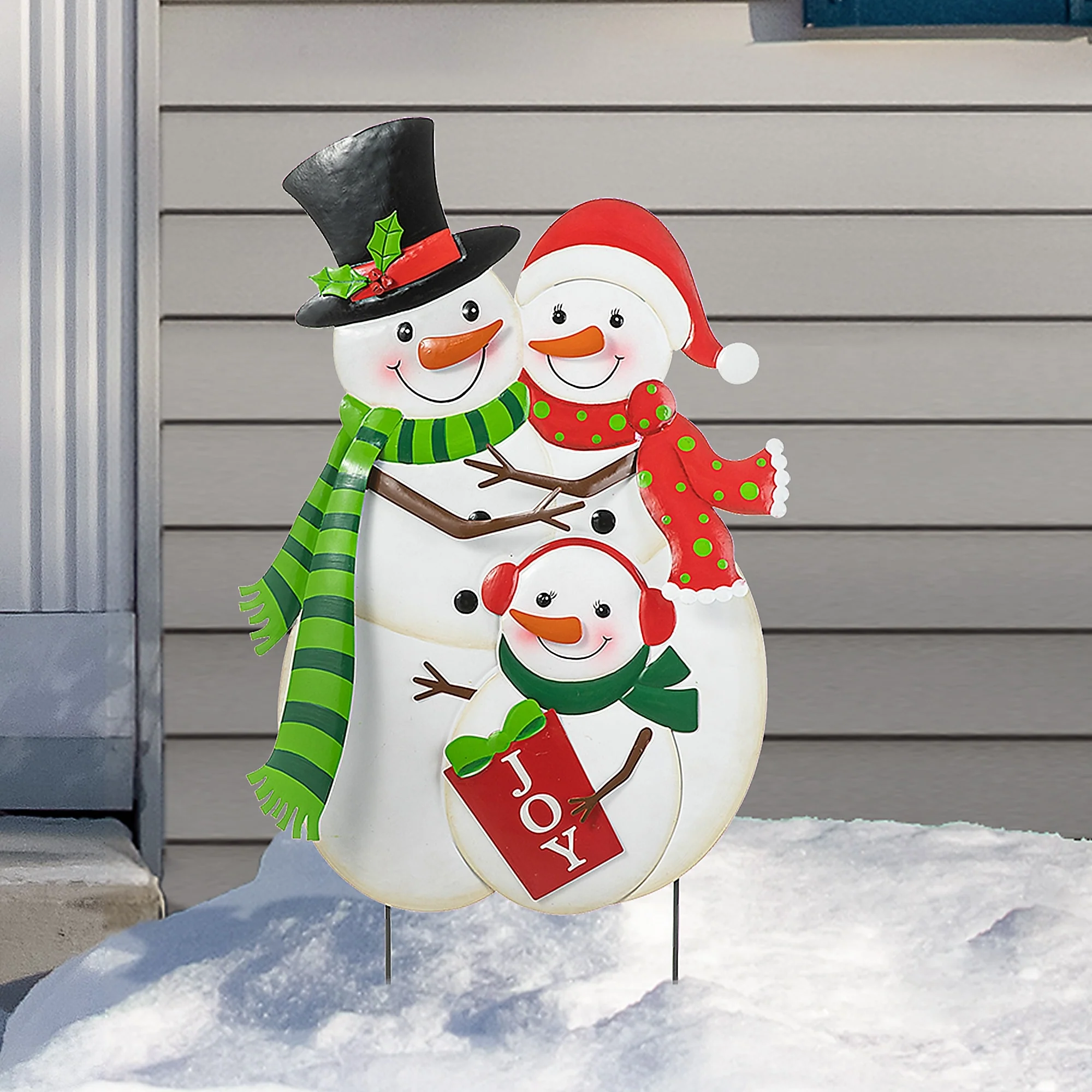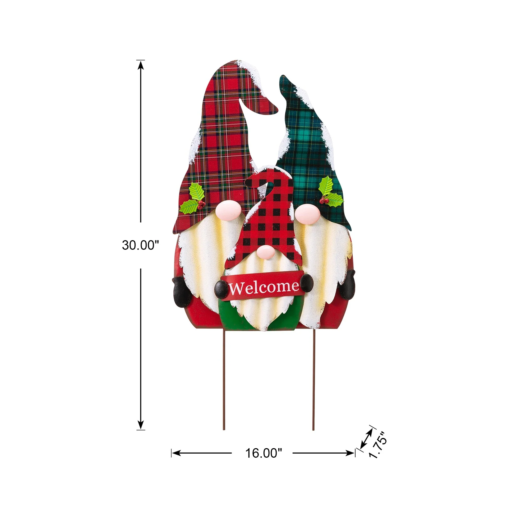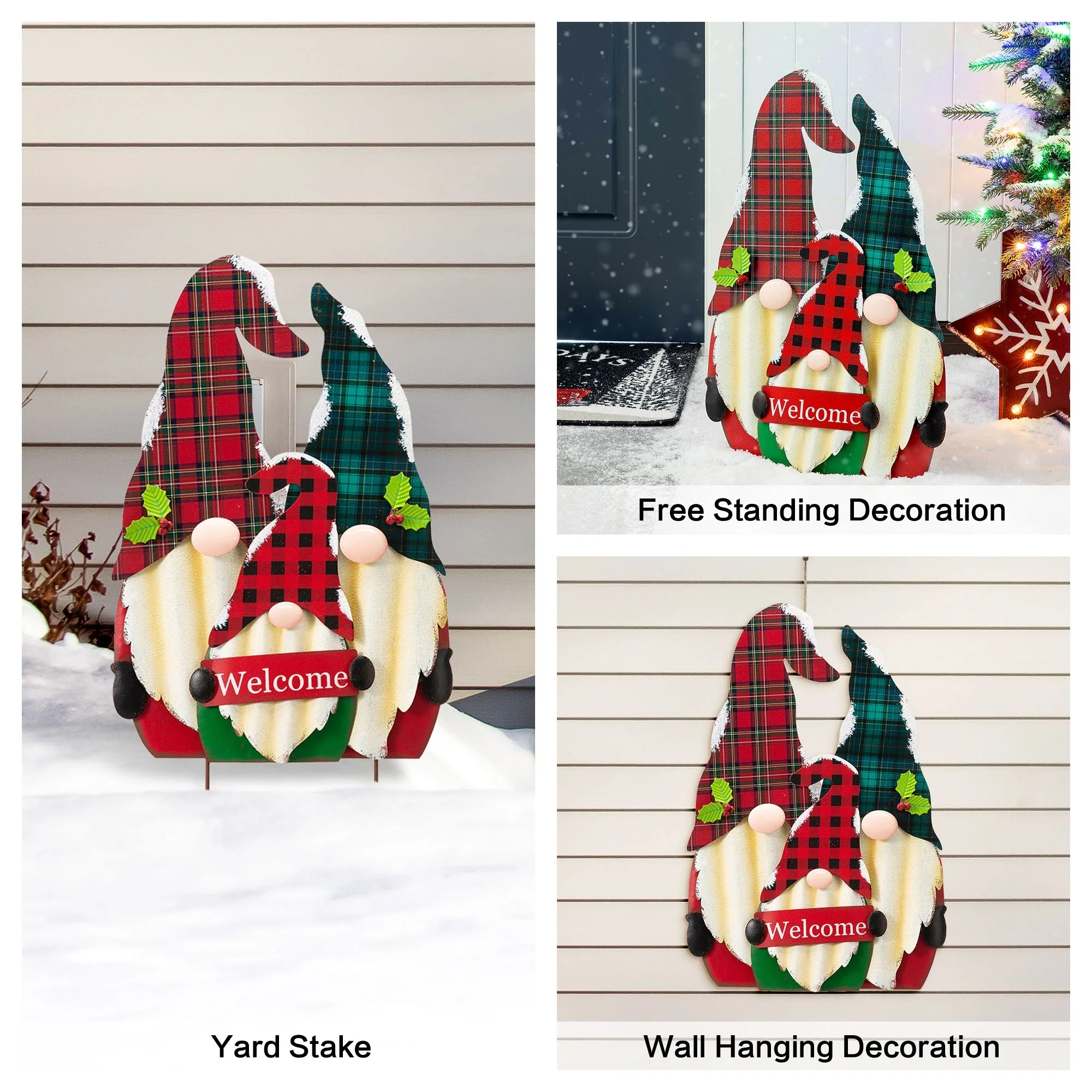 Add a festive touch to your garden this holiday season with the Glitzhome Metal Christmas Snowman or Gnome Family Yard Stake. Made from 100% iron, this yard stake features a charming gnome or snowman family wearing plaid hats and white beards. It adds a delightful splash of color and character to your backyard or front porch and is an eye-catching addition to your garden. This yard stake can also be used as wall decor or standing decor, making it a versatile addition to your holiday decorations. With easy assembly required and weatherproof design, this yard stake is suitable for all gardens. Choose from the cute snowman family, the adorable gnome family, or the stylish snowman lovers' yard stake to add some charm to your holiday decorations.