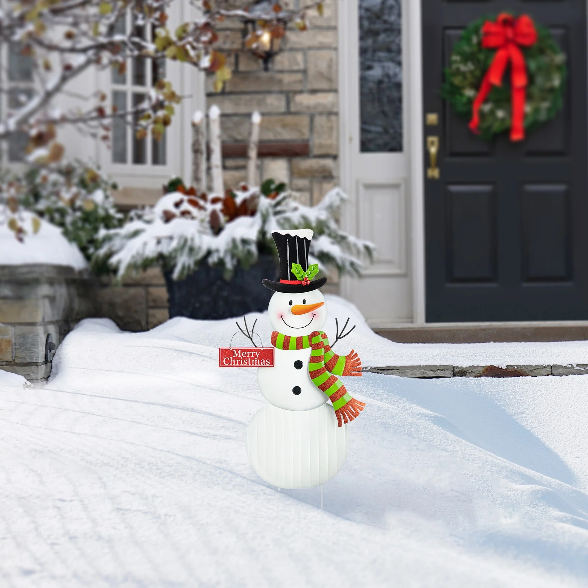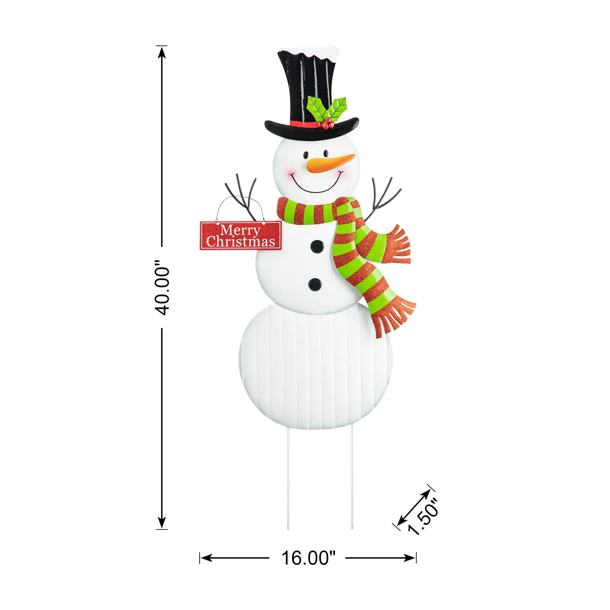- Snowman: 16.00 inches long x 40.00 inches high; Stake Length: 8.27"