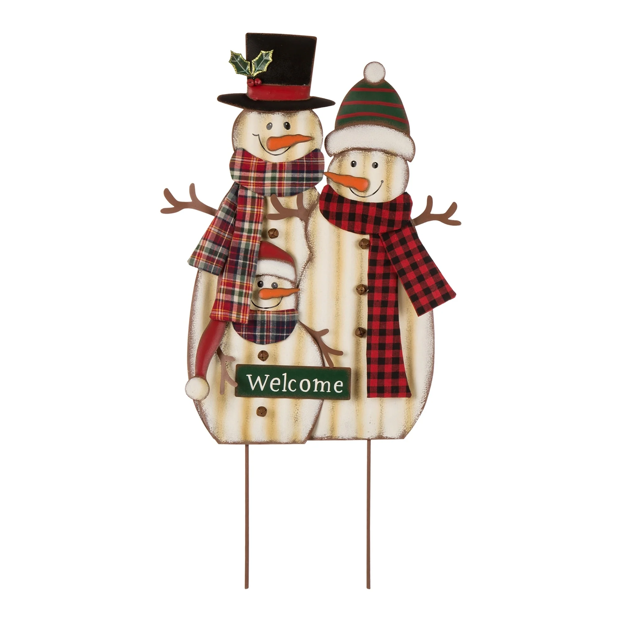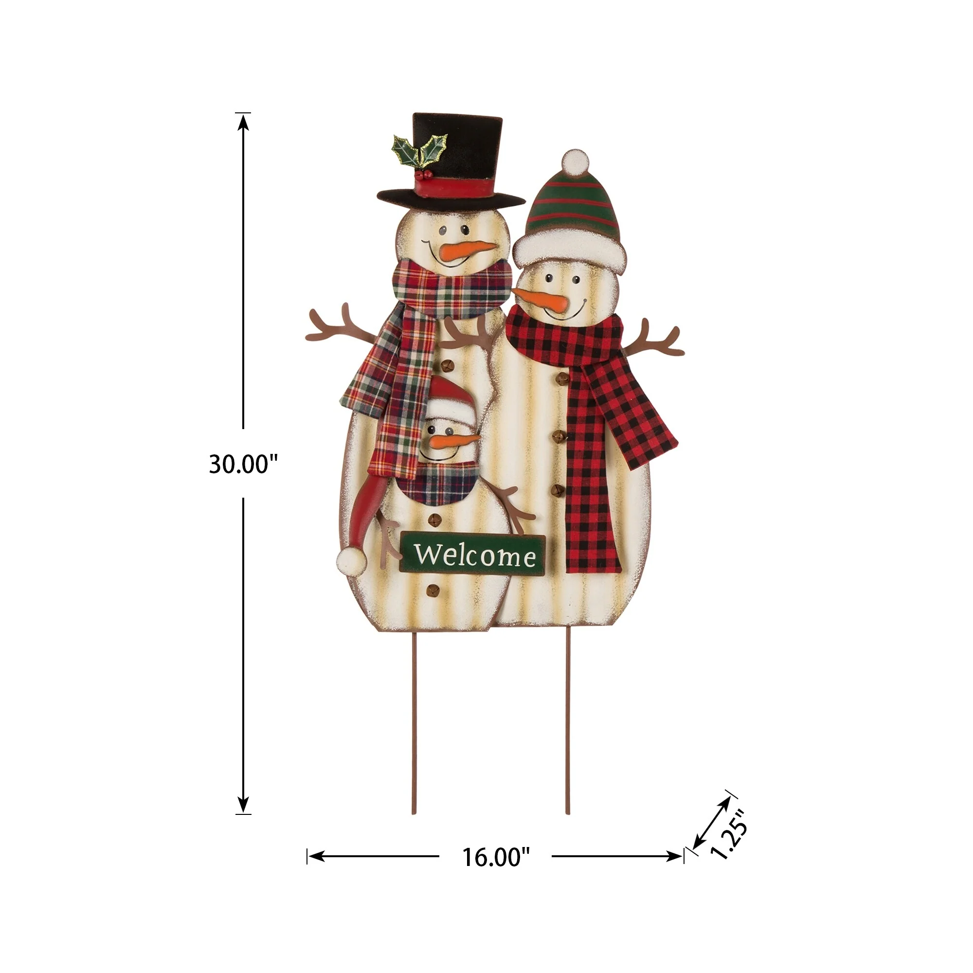 - "Welcome" Snowman Family: 16.14 inches long x 29.29 inches high;