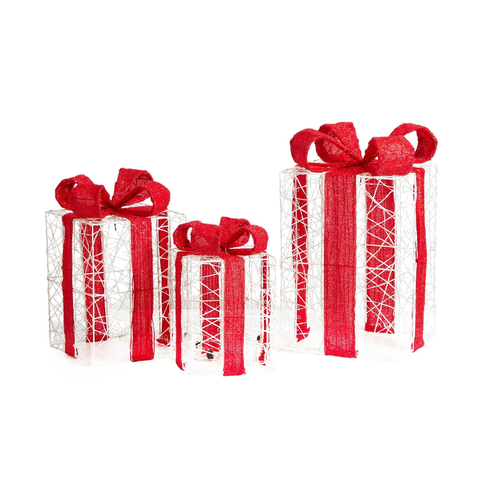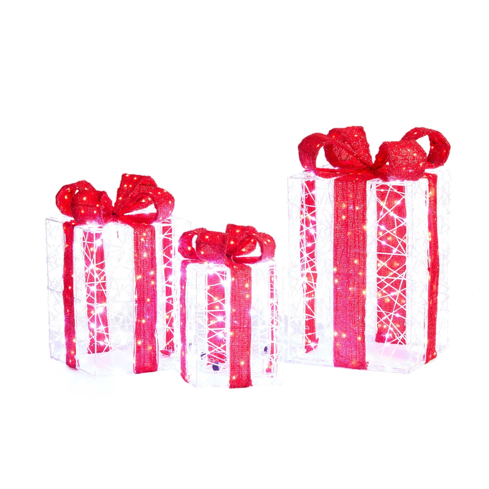 Glitzhome Set of 3 Lighted Christmas 3D Giftbox Decor with 855 White LED Lights - 3D Giftbox