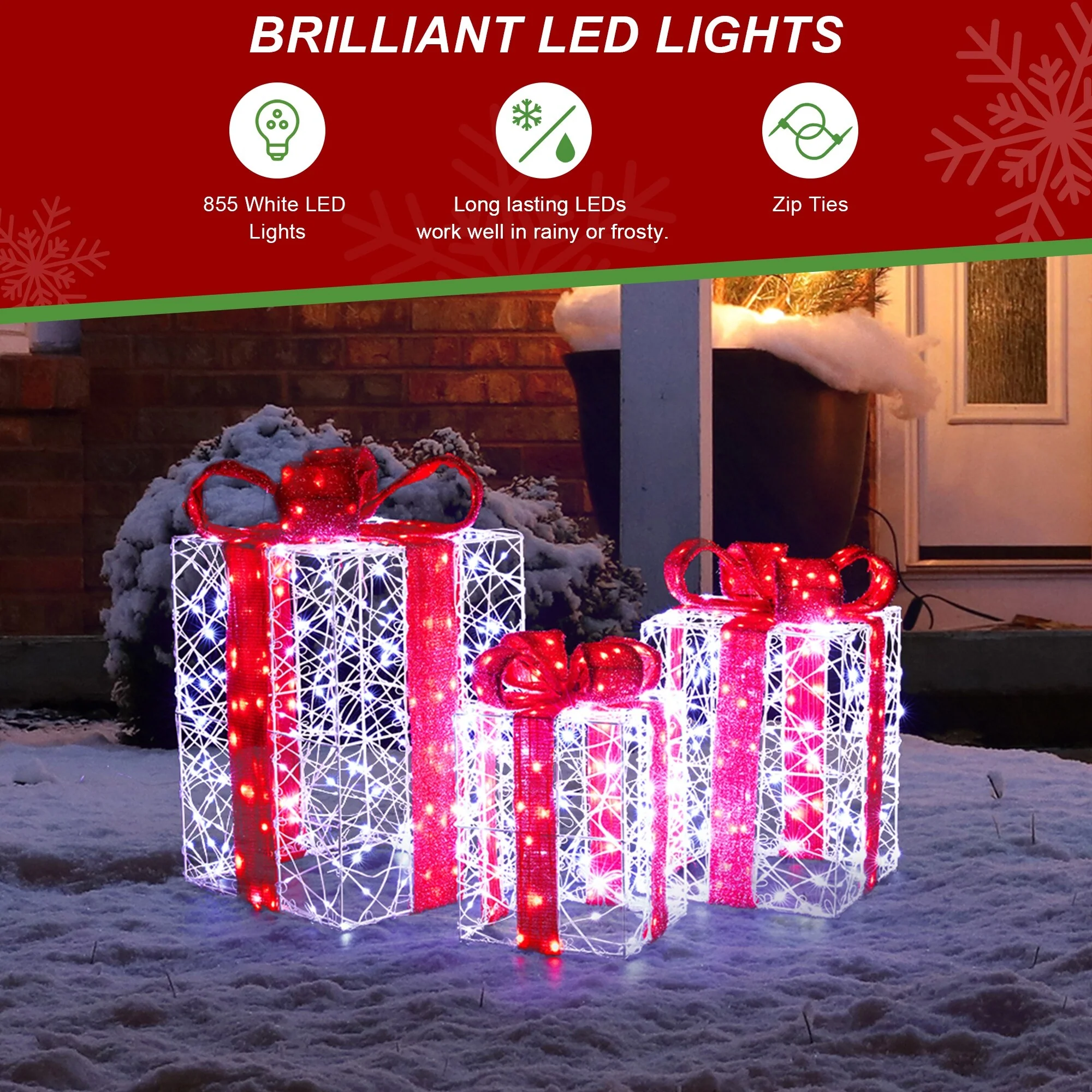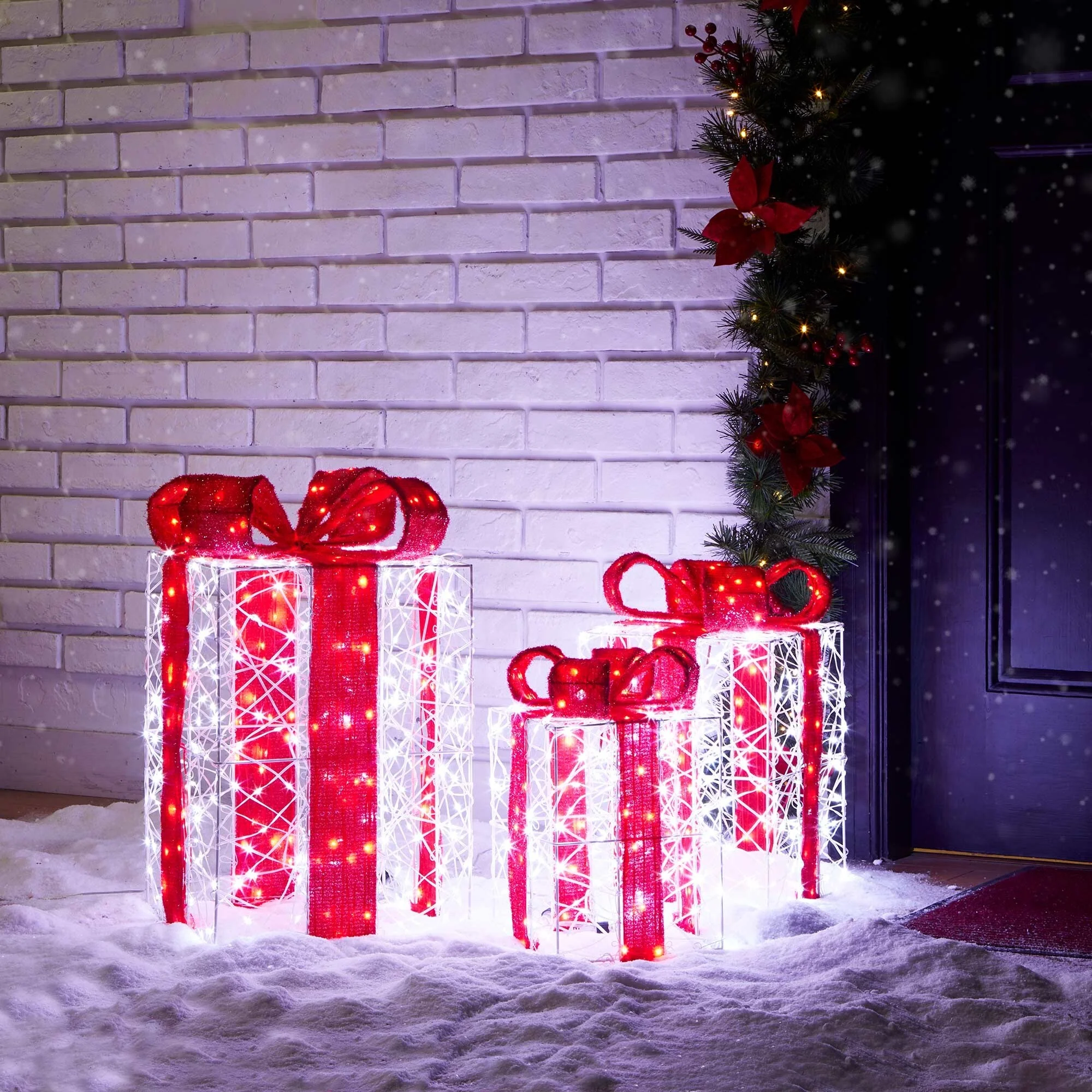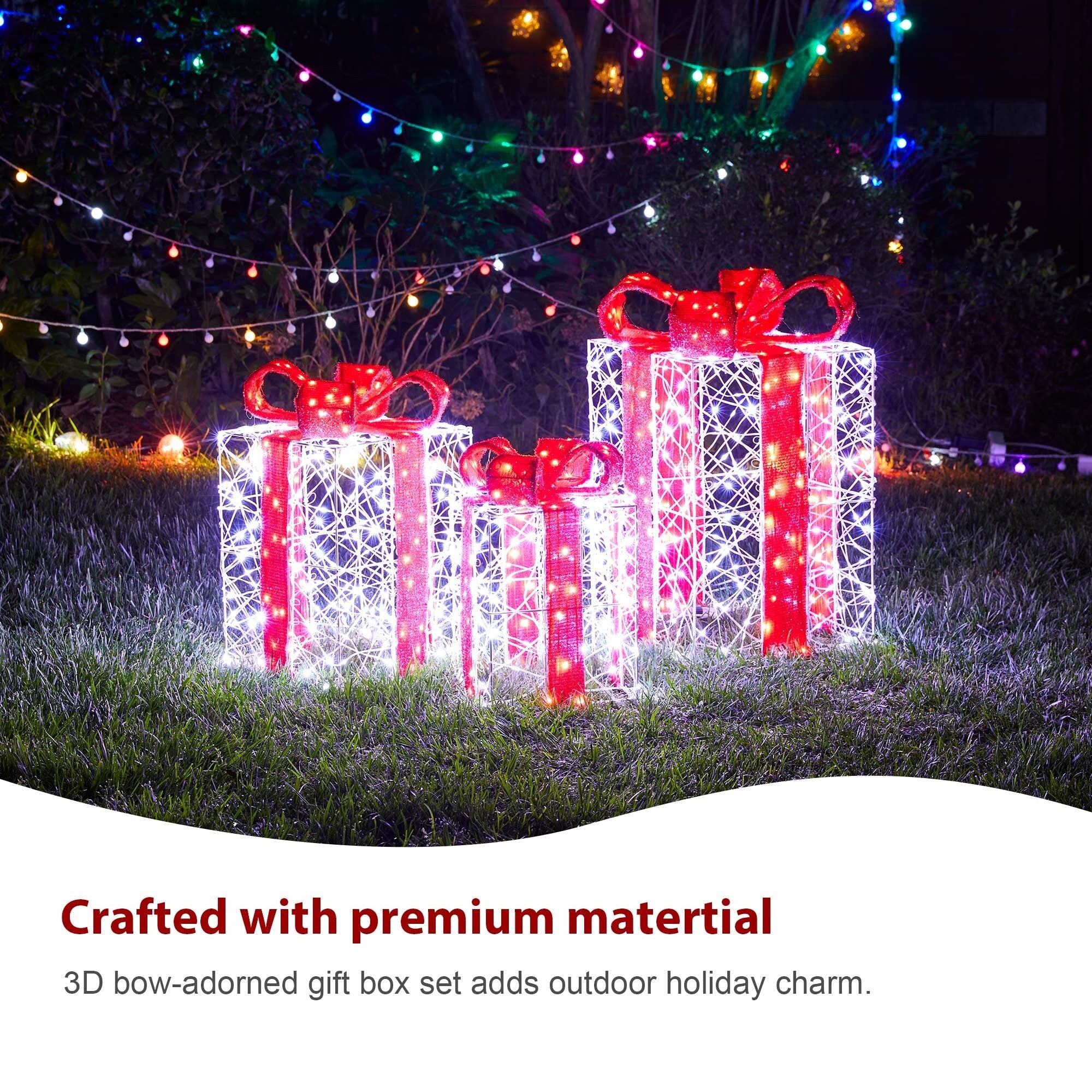 • 3D bow-adorned gift box set adds outdoor holiday charm