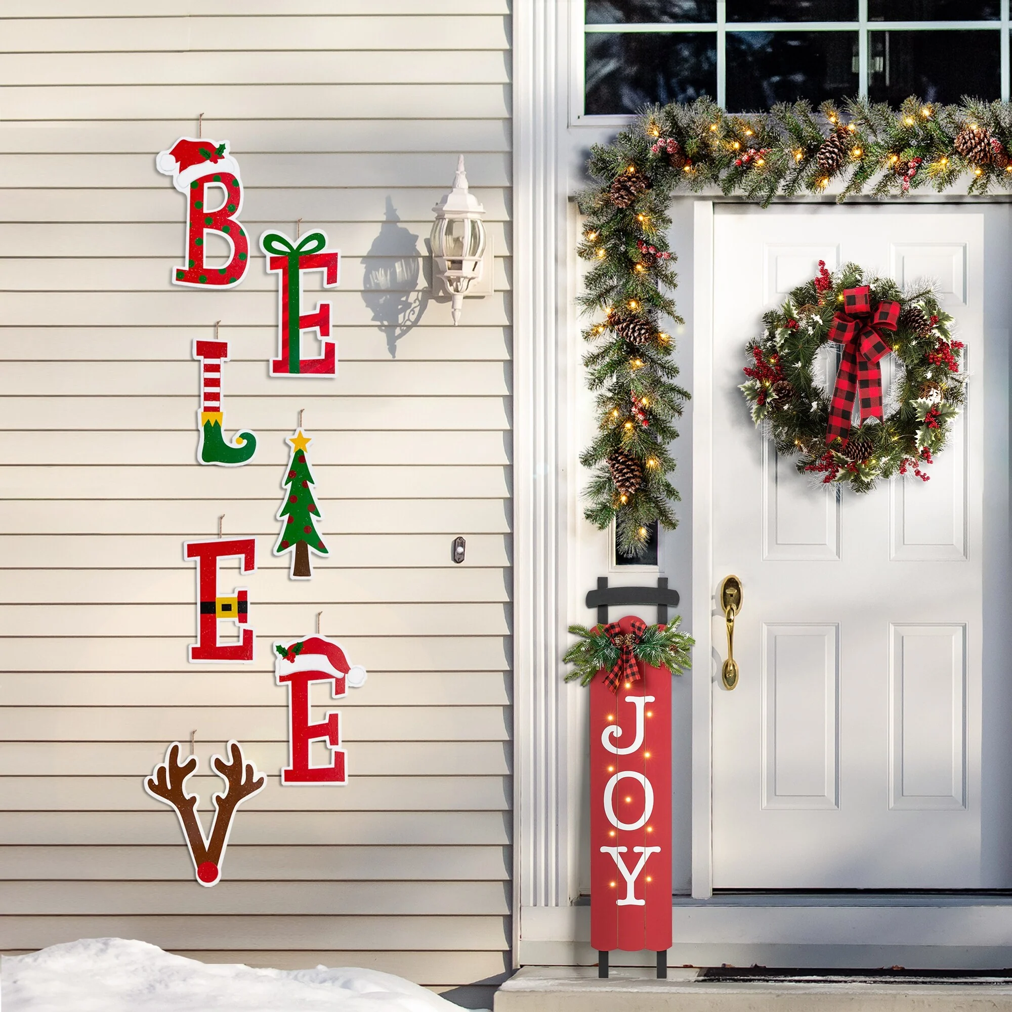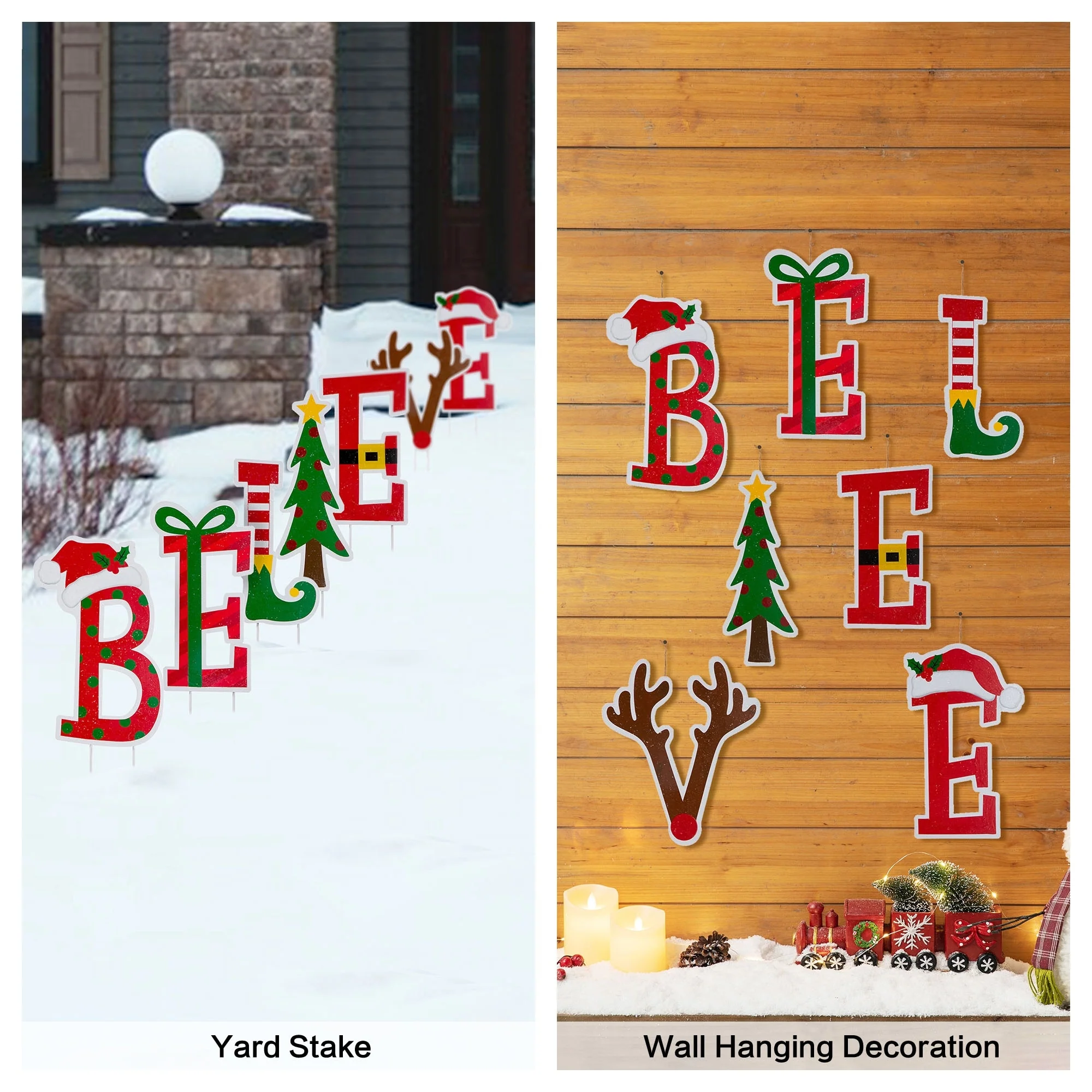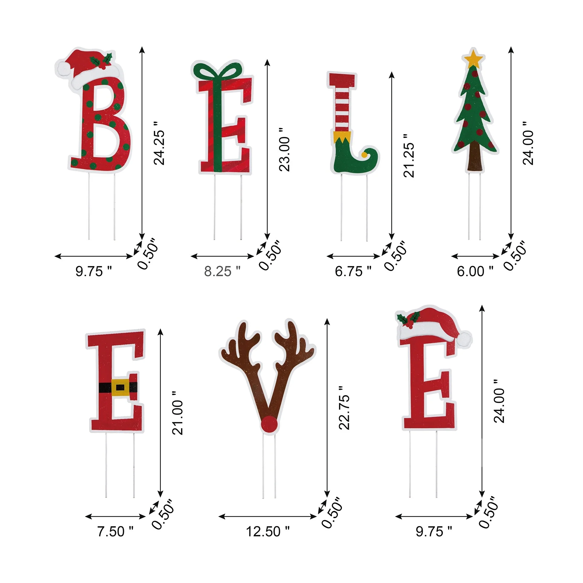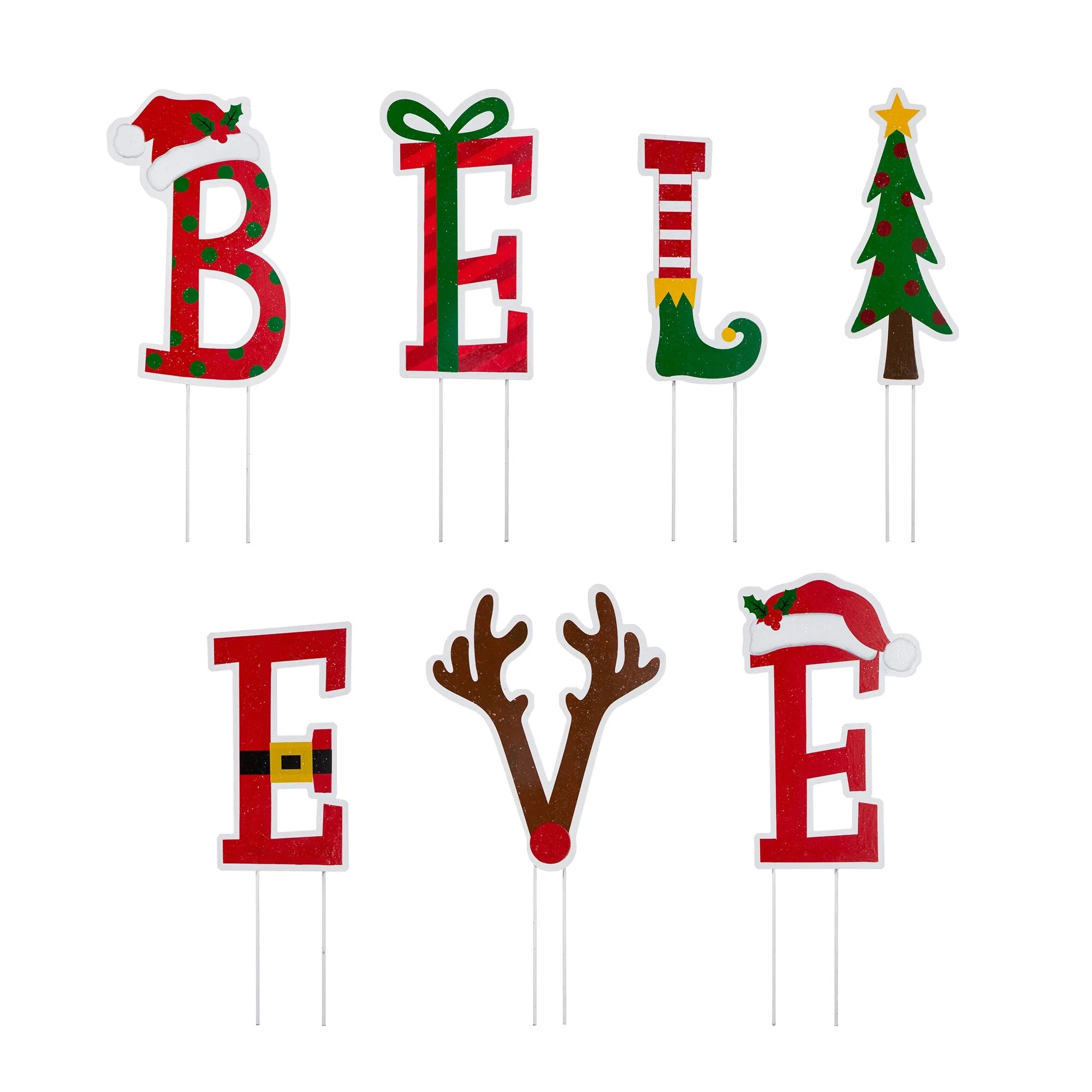 Ideal for yards and gardens both big and small, this set of "BELIEVE" - yard stakes allow you to space out your faithful for the life and future. Each letter featured Christmas icons and colors, stylish designed and valuable textured. It's a lovely addition to any entrance, ideal to show your hospitality.