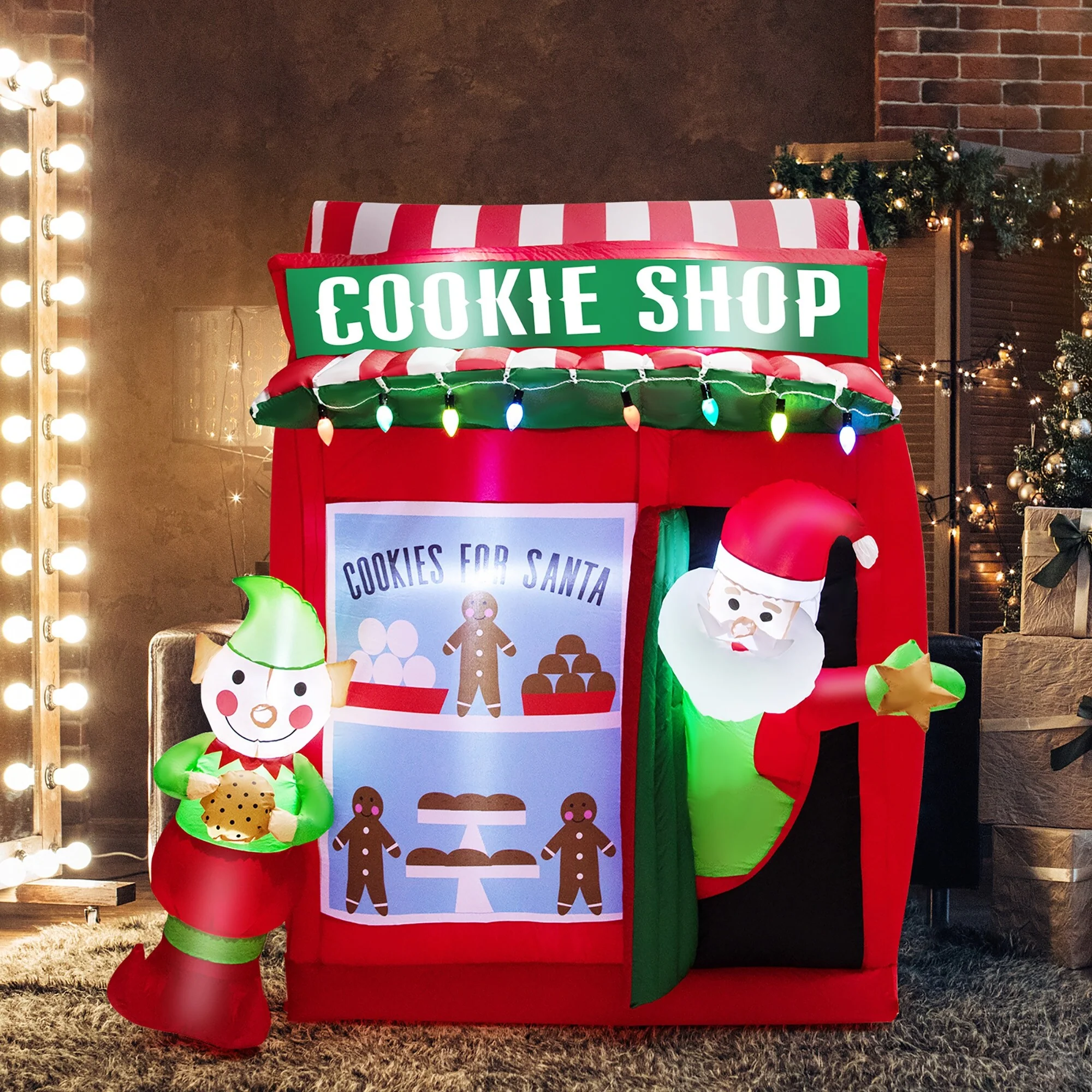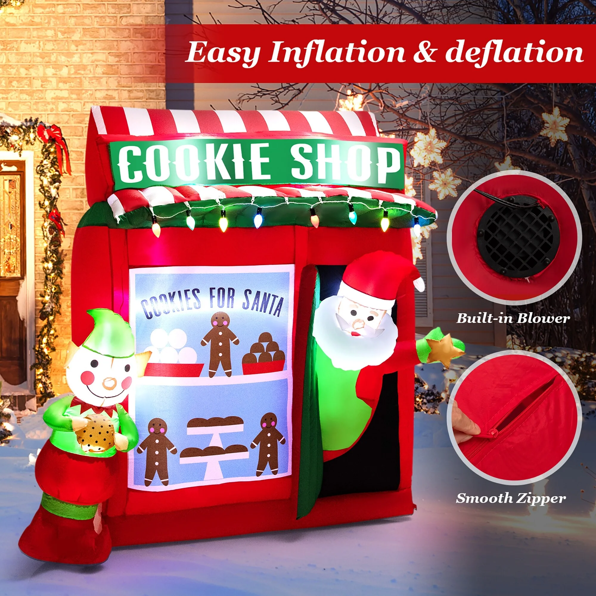 Christmas is coming soon. Are you ready or still looking for a unique holiday decor? Our inflatable Christmas decoration will be your ideal choice. Vivid Santa Claus, gingerbread man and cookie shop are a symbol of Christmas, spreading a happiness atmosphere to your family, friends and neighborhoods. Besides, the glowing LED lights and colorful lights on the cookie shop look great at night, which makes the Christmas party much more realistic and attracts kid's attention at first sight. Waterproof polyester fabric features long-lasting performance for worry-free use. The ground stakes and ropes also greatly improve its stability without worries about blow away in bad weather.