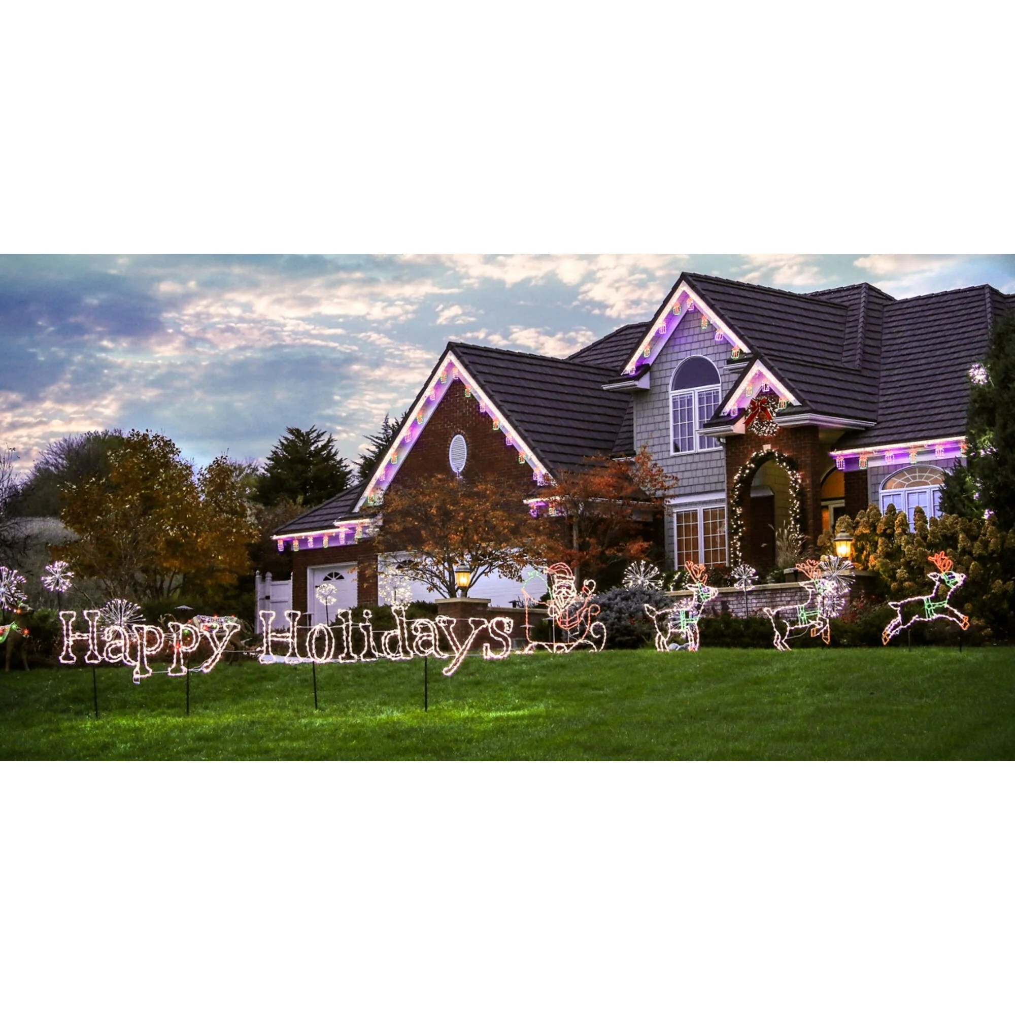Spread festive cheer with this LED Santa in sleigh decoration. This charming depiction of Santa waving joyfully as he travels in his sleigh is a delightful addition to any holiday display. Features intensely bright LED lights in a mix, creating a vibrant and colorful glow. Designed to pair beautifully with reindeer figures, it completes the iconic Christmas scene, bringing joy and magic to your home, garden, or storefront.