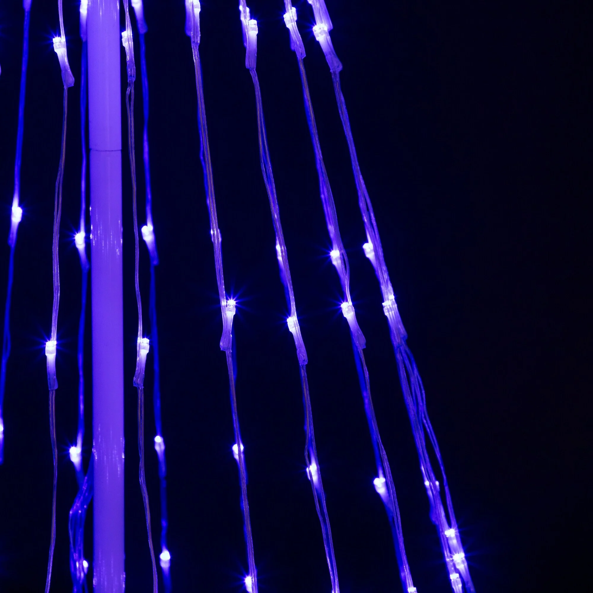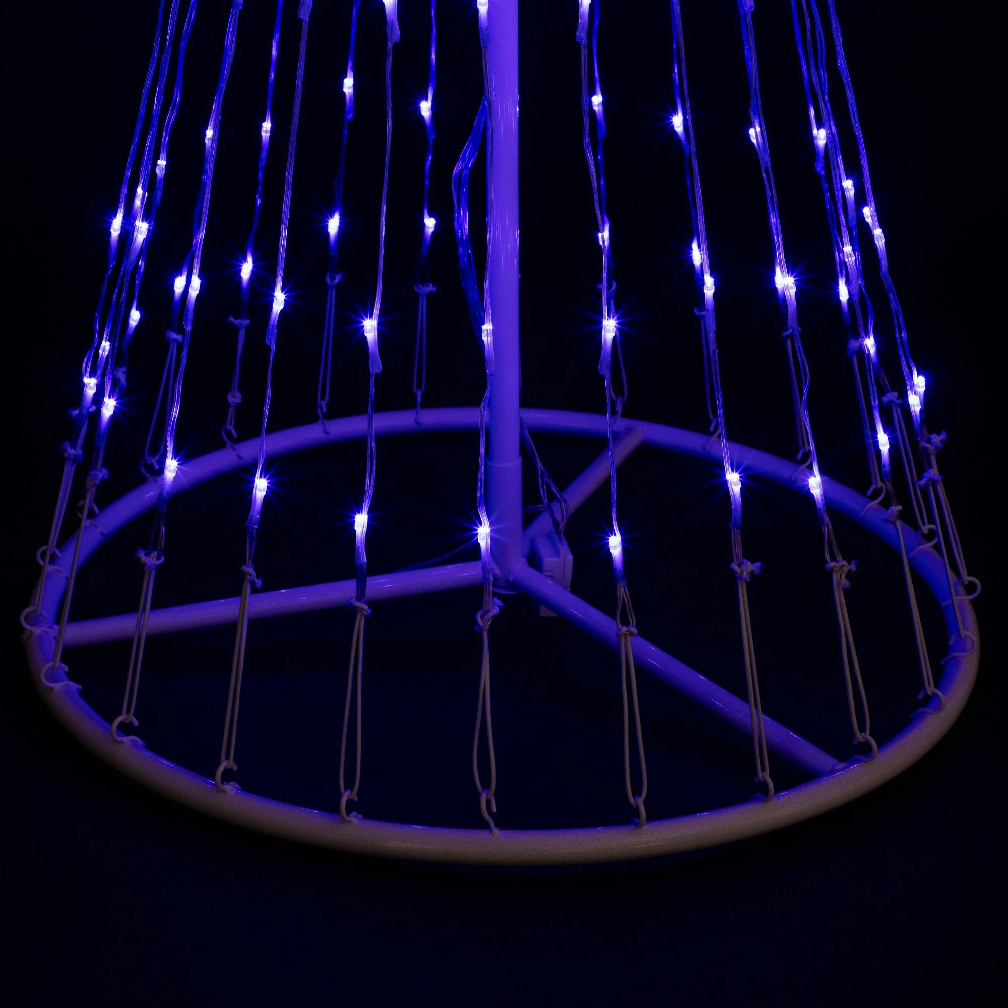 Modern style and functionality blend with Christmas tradition in this spectacular blue light show Christmas cone tree. Twelve dazzling effects send 152 long-lasting LED lights blinking and spinning around the cone tree’s white aluminum frame. The lighting options of this LED lightshow tree are sure to bring an added element of delight to your outdoor lights display.