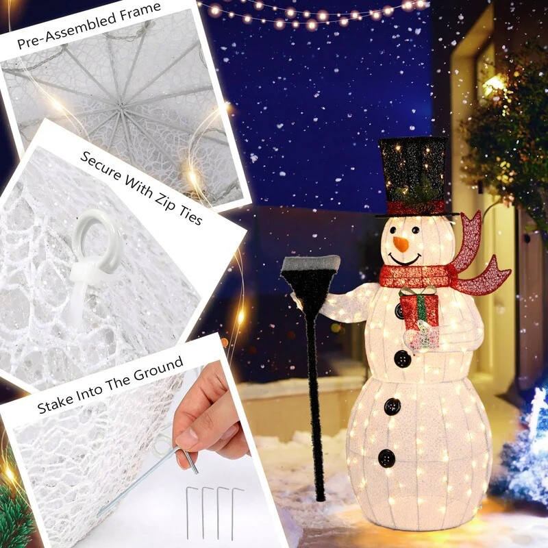- 【200 LED Lights】Light up your holiday with our cute snowman Christmas decoration. The snowman set is prelit with 200 white LED lights which are cool to the touch. The beautiful and secure design brings you a happy and warm holiday.