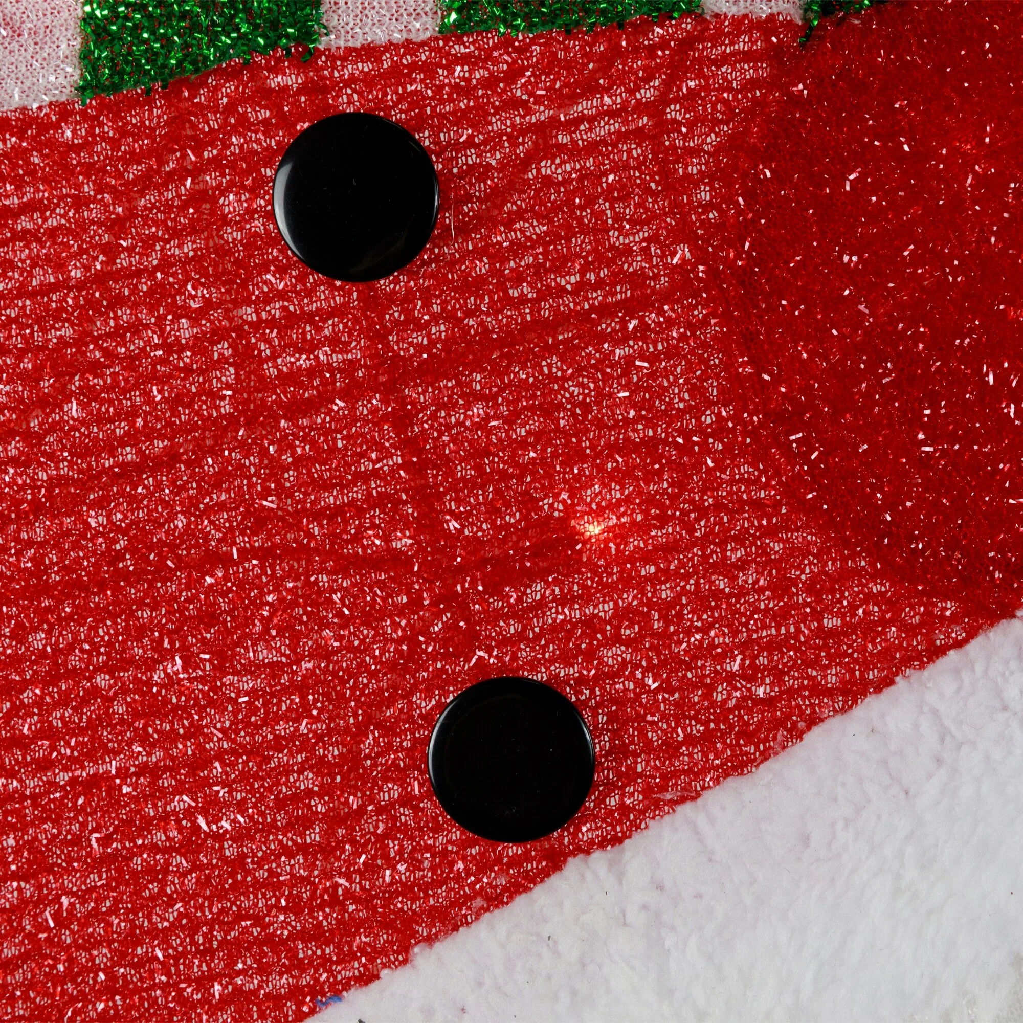 Add a playful vibe to your winter decor with this jolly snowman. He is ready for some outdoor fun and a snowball fight wearing a sweater, hat, scarf, and mittens. Designed with a partial 3-D feature and clear lights, he will be the focal point of your yard. Quick and easy installation lets you light up your outdoors in minutes. Grab yours today and add a festive touch to your holiday decor.