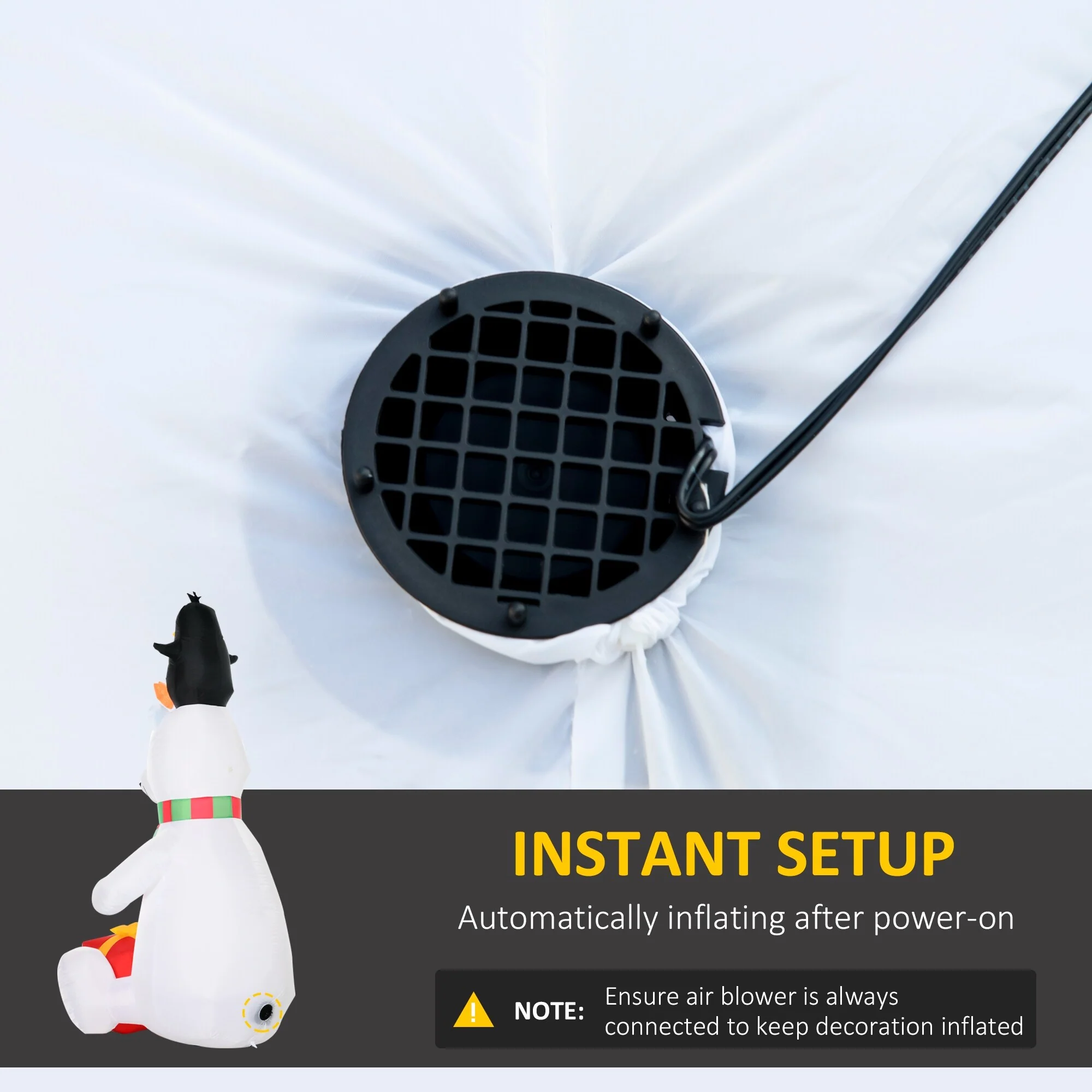 • Outsunny 7ft Christmas Inflatable Polar Bear with Penguin on Head with Candy Cane and Gift Box, Blow-Up Outdoor LED Yard